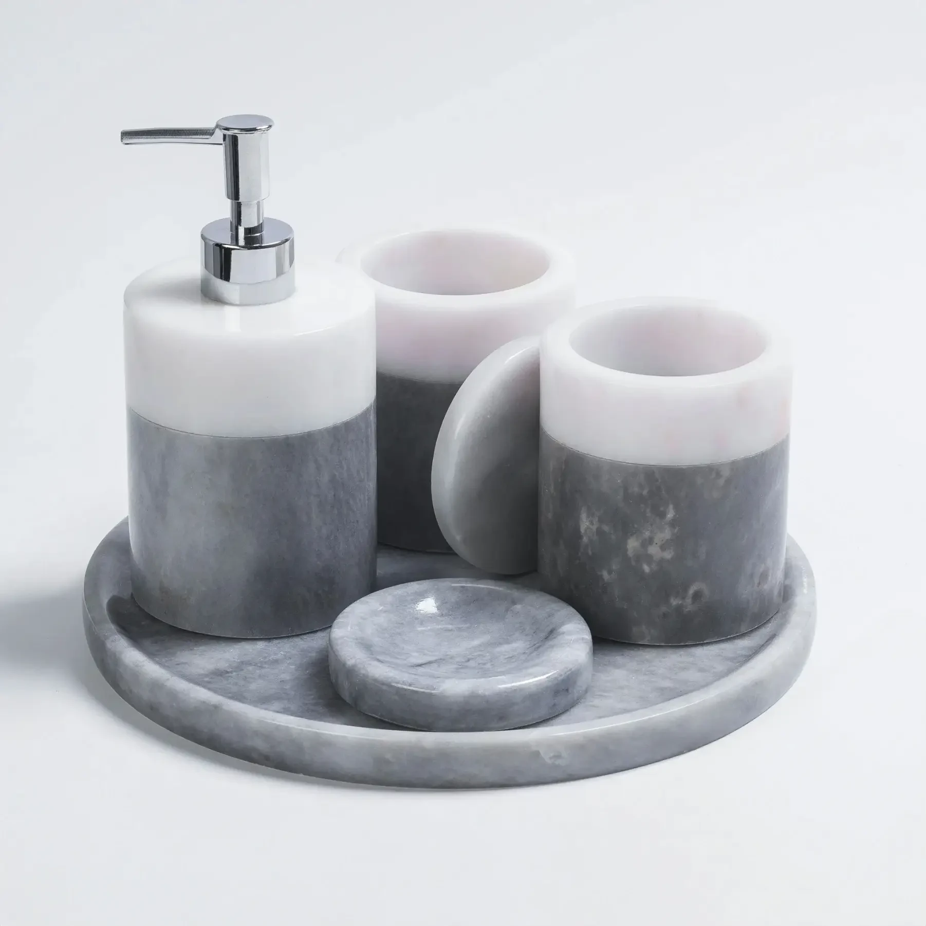 Rizz Mermer 5'li Banyo Seti Gri Beyaz