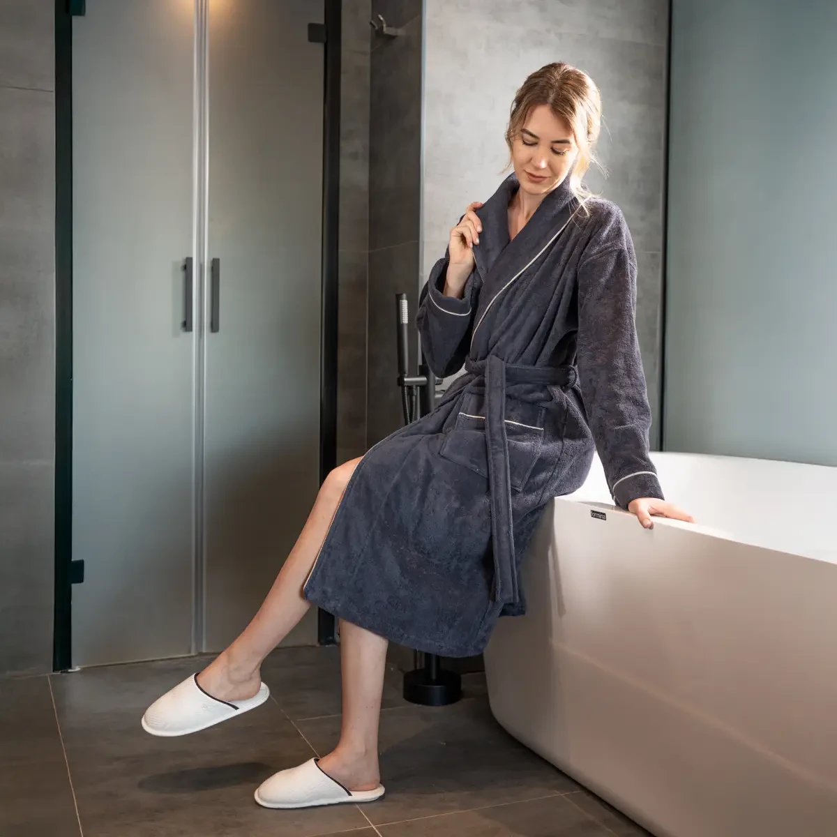 Pansy Pima Pamuk Unisex Bornoz Antrasit