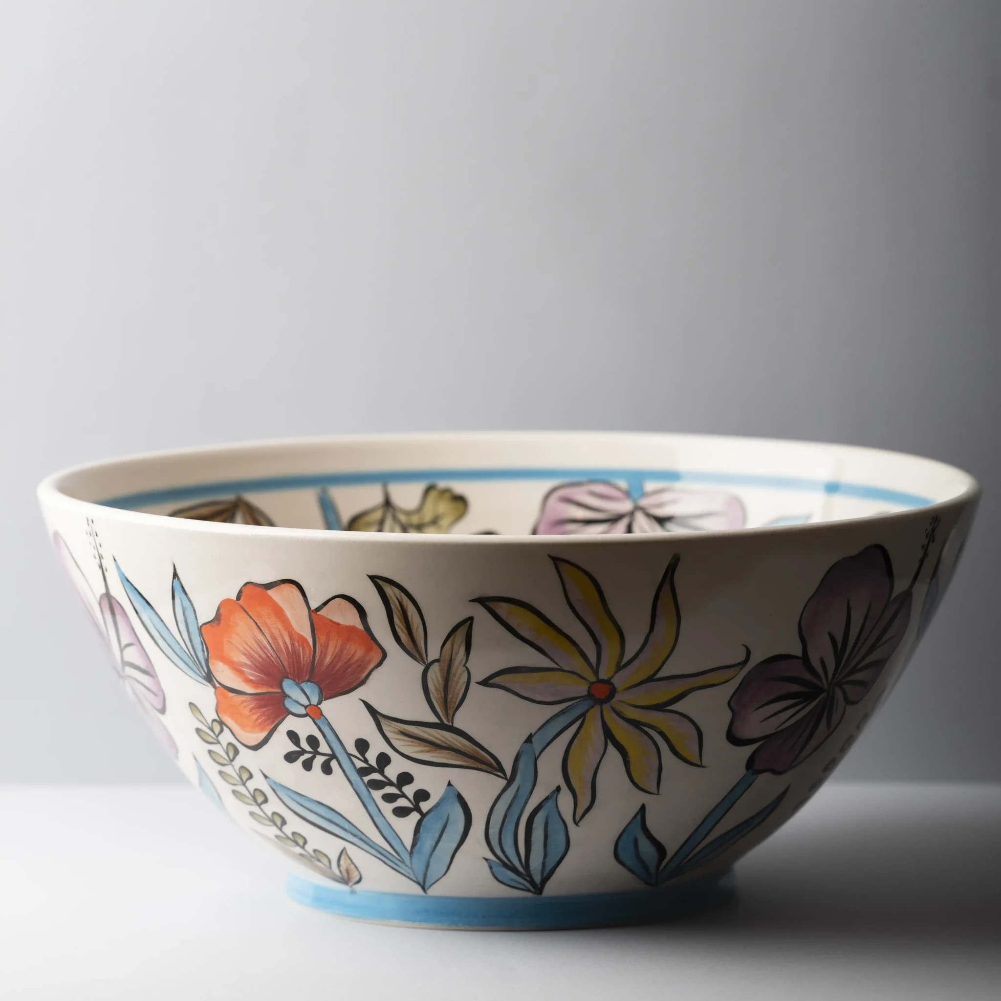 Itzel Desenli Ayaklı Mavi Kase 25 cm