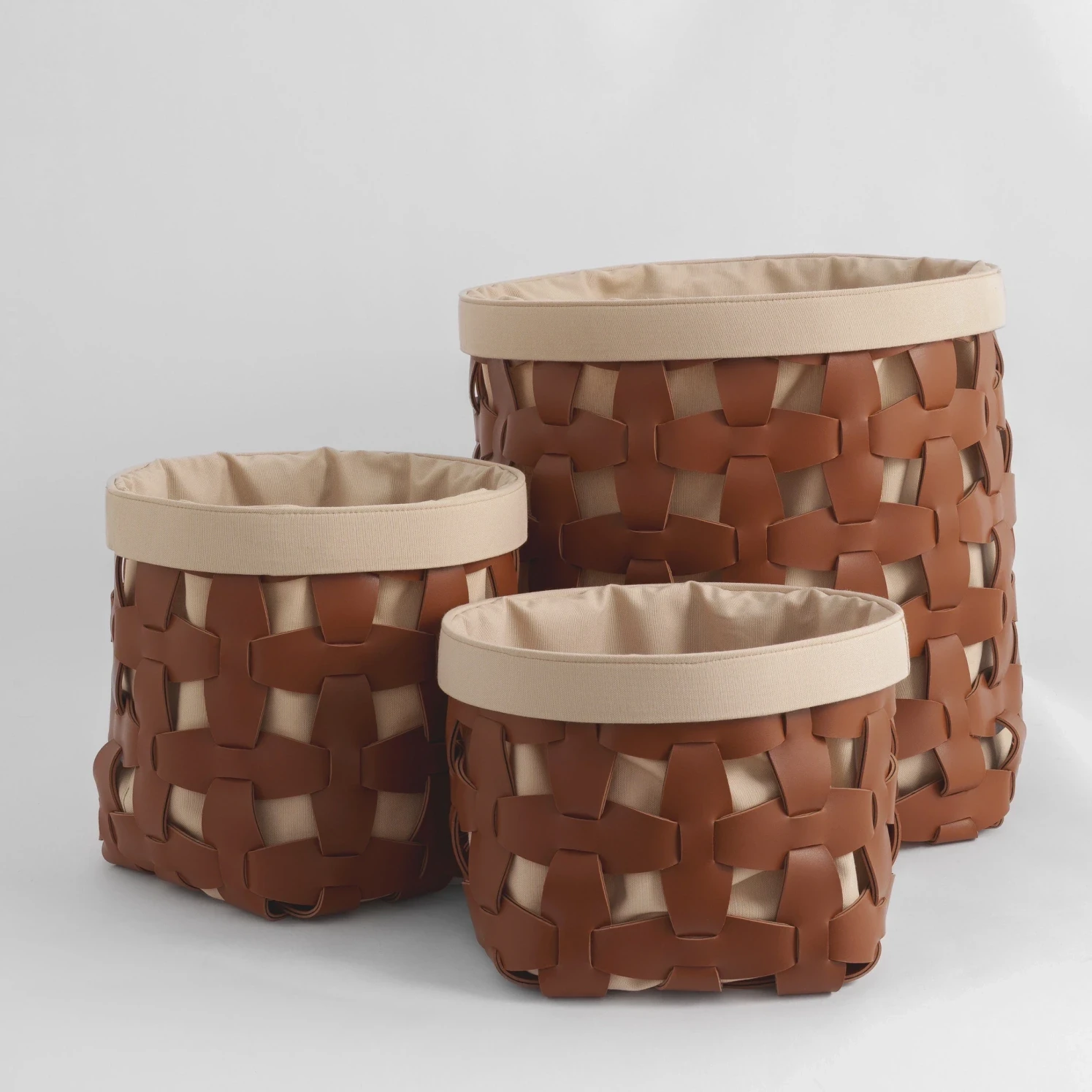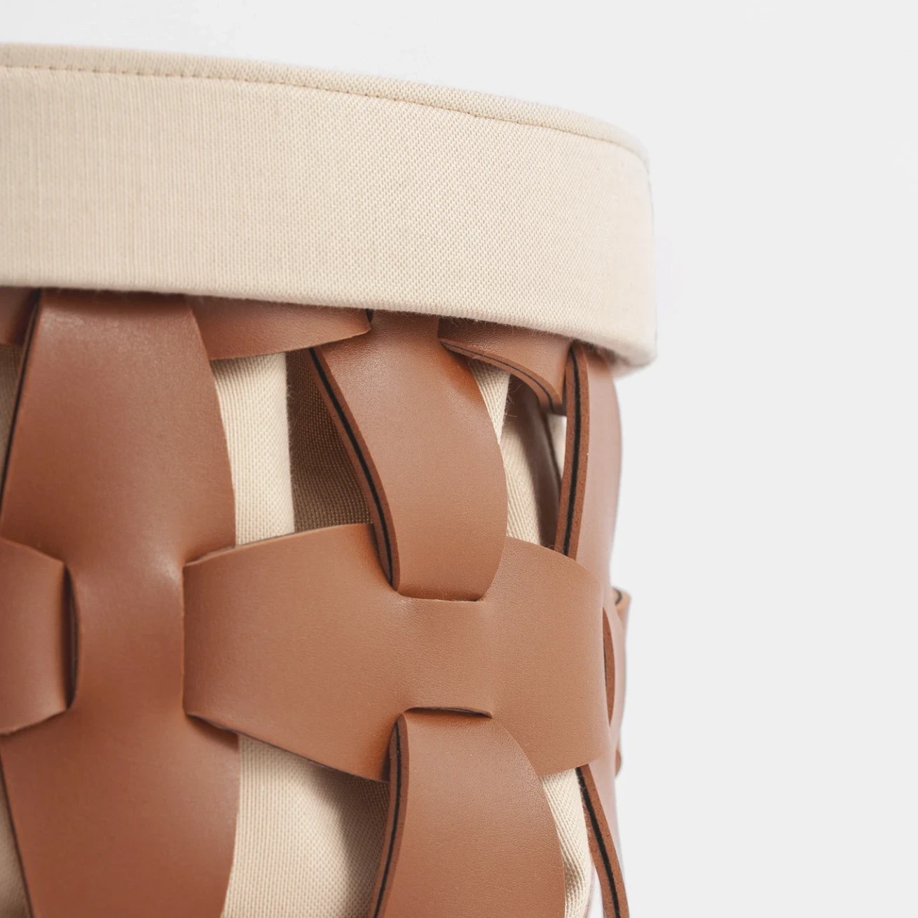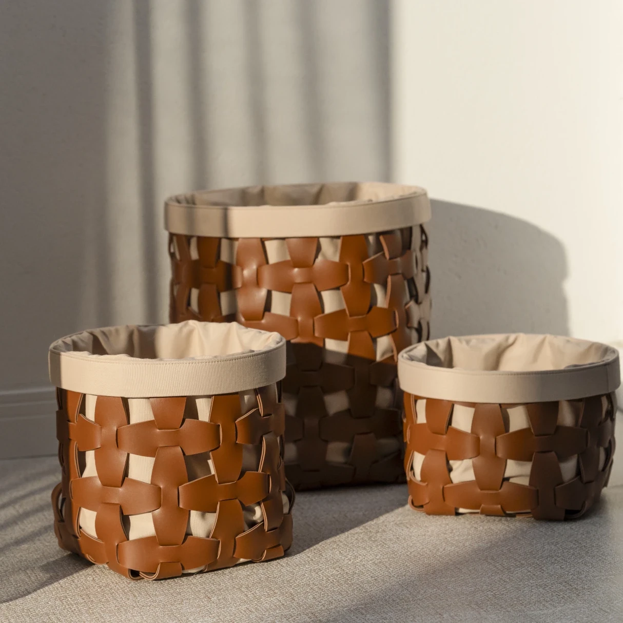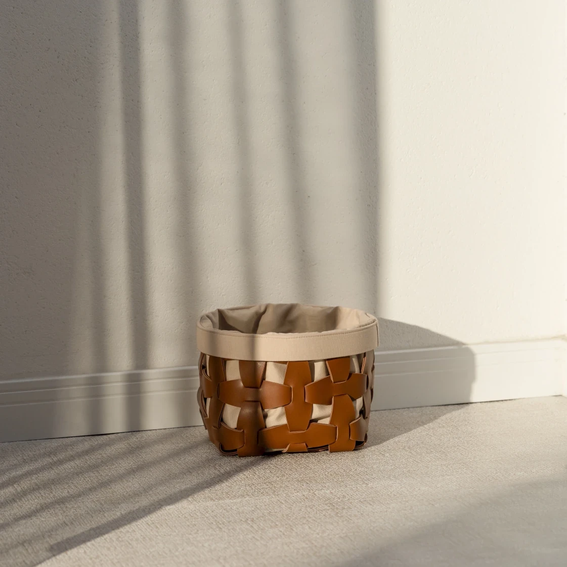 Royce deri örgü sepet, doğal derinin sıcaklığını zarif el işçiliğiyle birleştiriyor. Hem işlevsel hem de şık tasarımıyla evinize sofistike bir görünüm kazandırıyor.