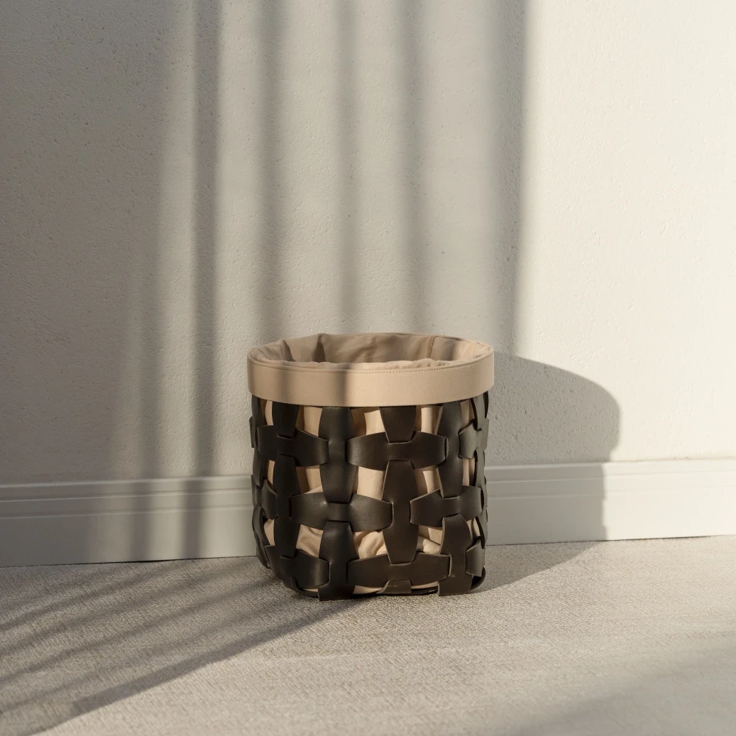 Royce deri örgü sepet, doğal derinin sıcaklığını zarif el işçiliğiyle birleştiriyor. Hem işlevsel hem de şık tasarımıyla evinize sofistike bir görünüm kazandırıyor.