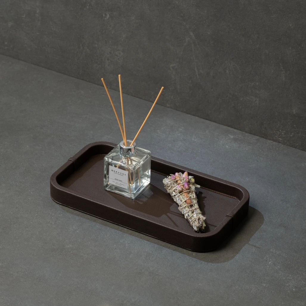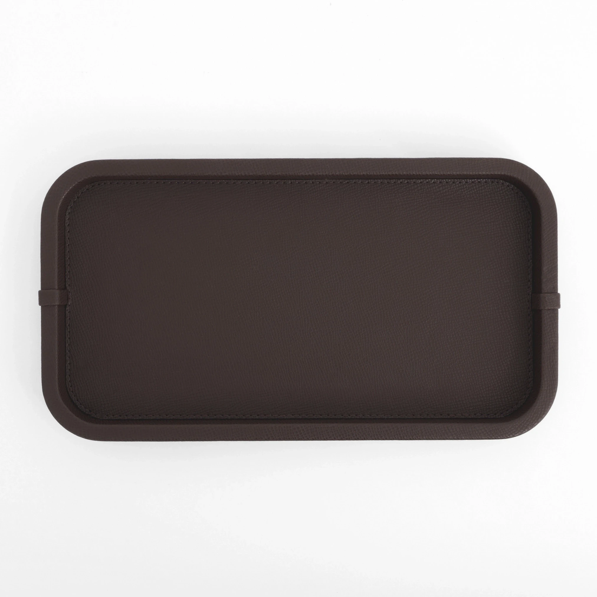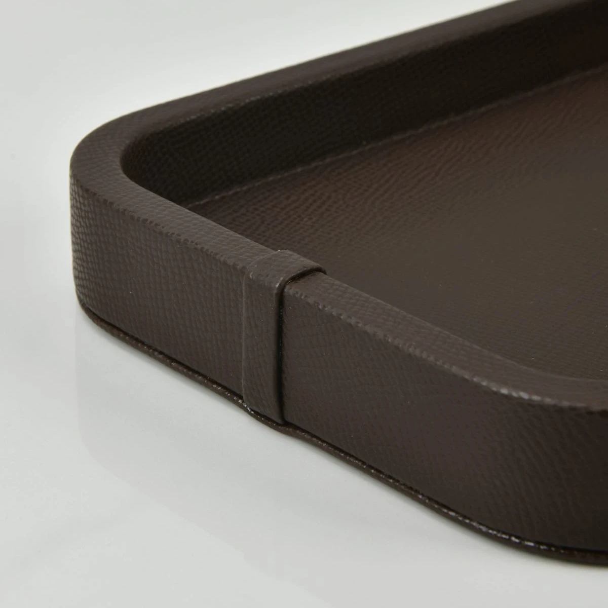 Marta Dekoratif Deri Tepsi Koyu Kahverengi 35x19x3 cm