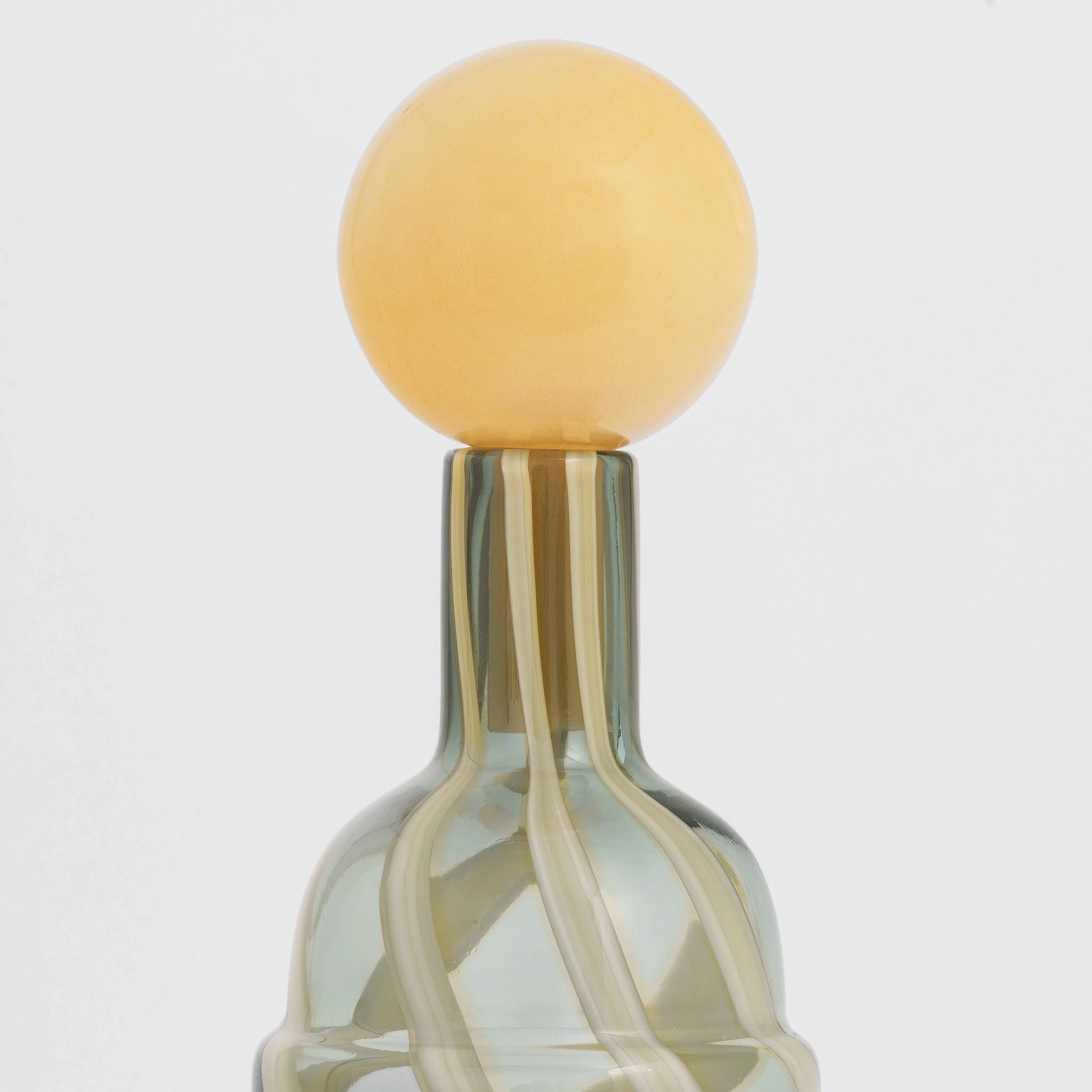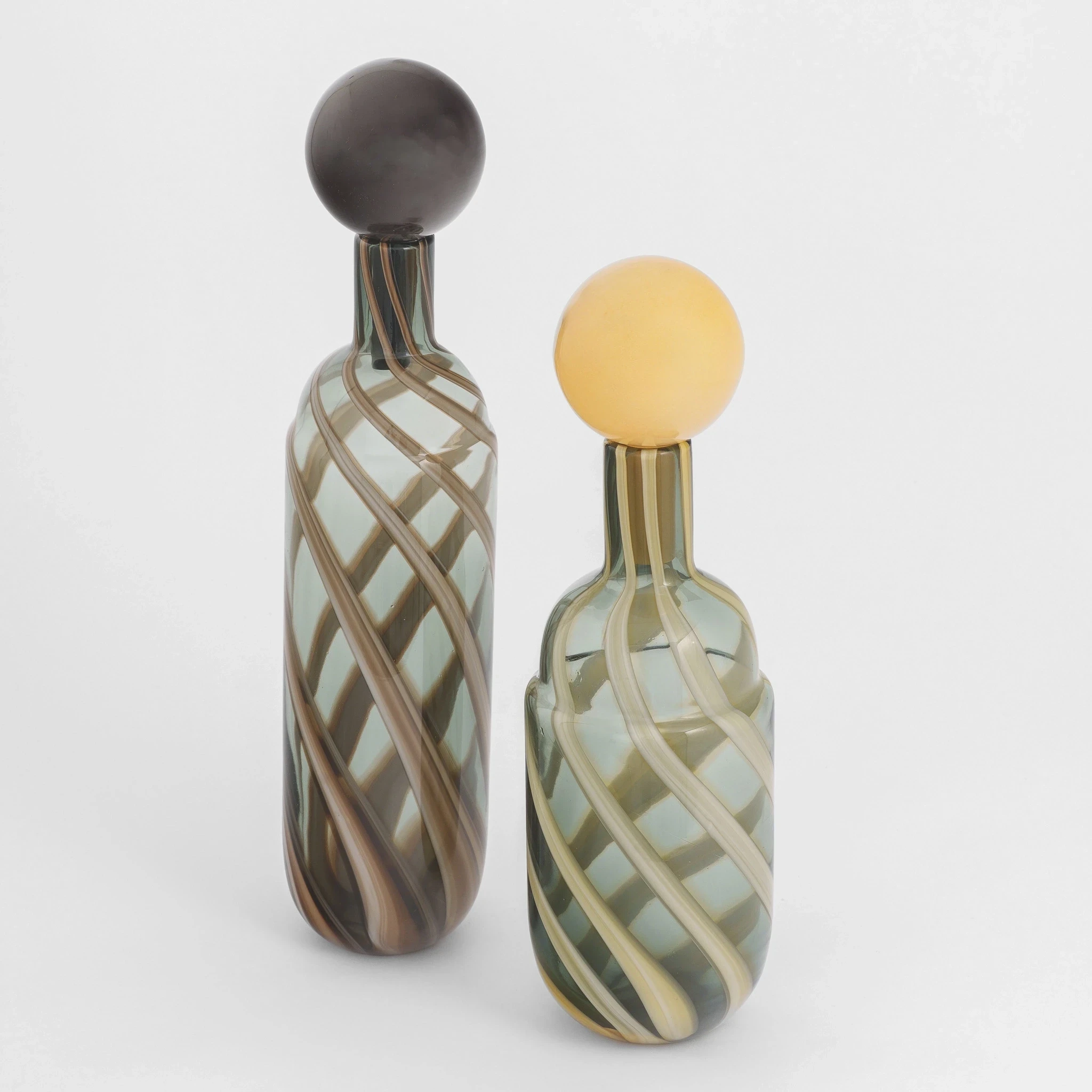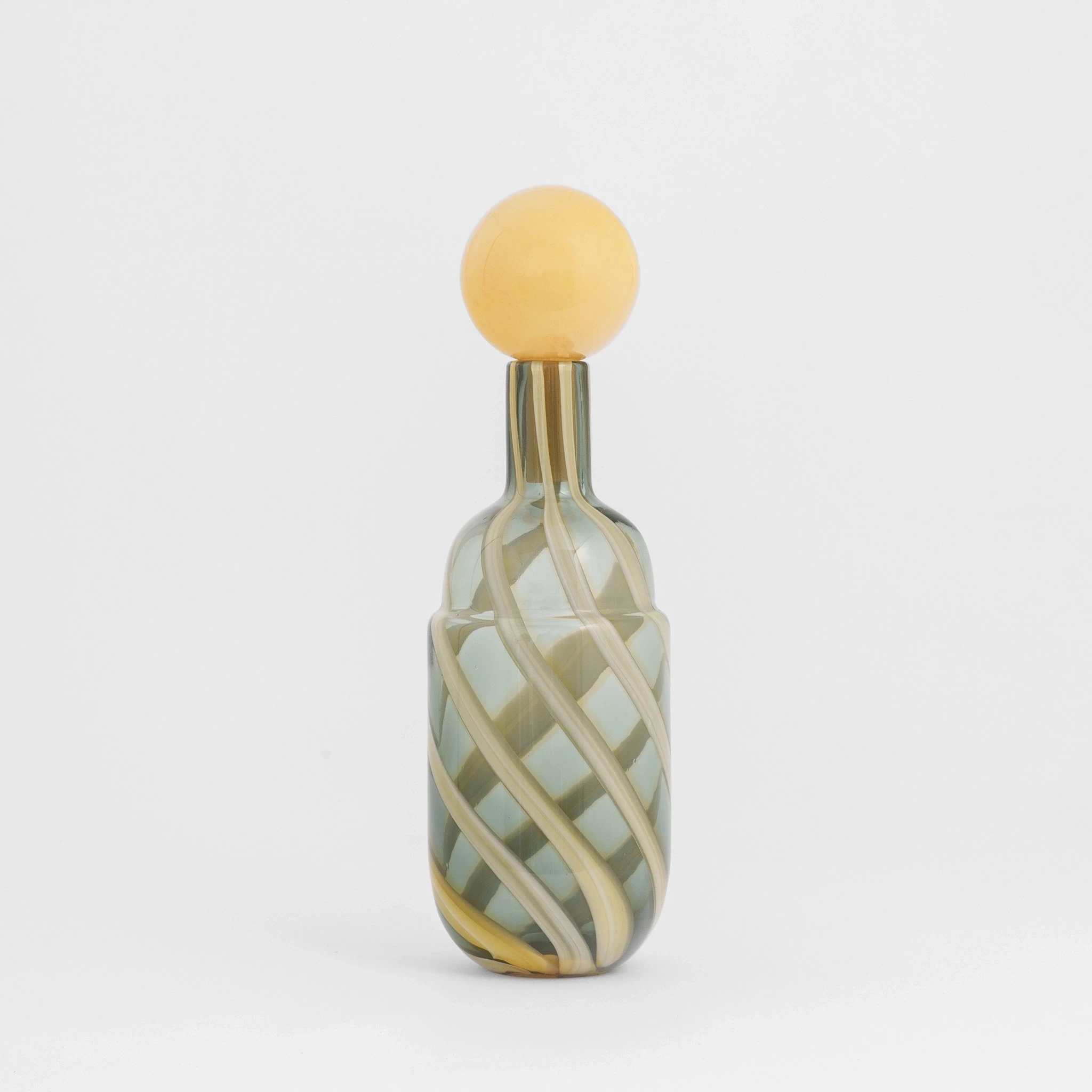 Lyon Yeşil Krem Çizgili Cam Vazo 12x39 cm