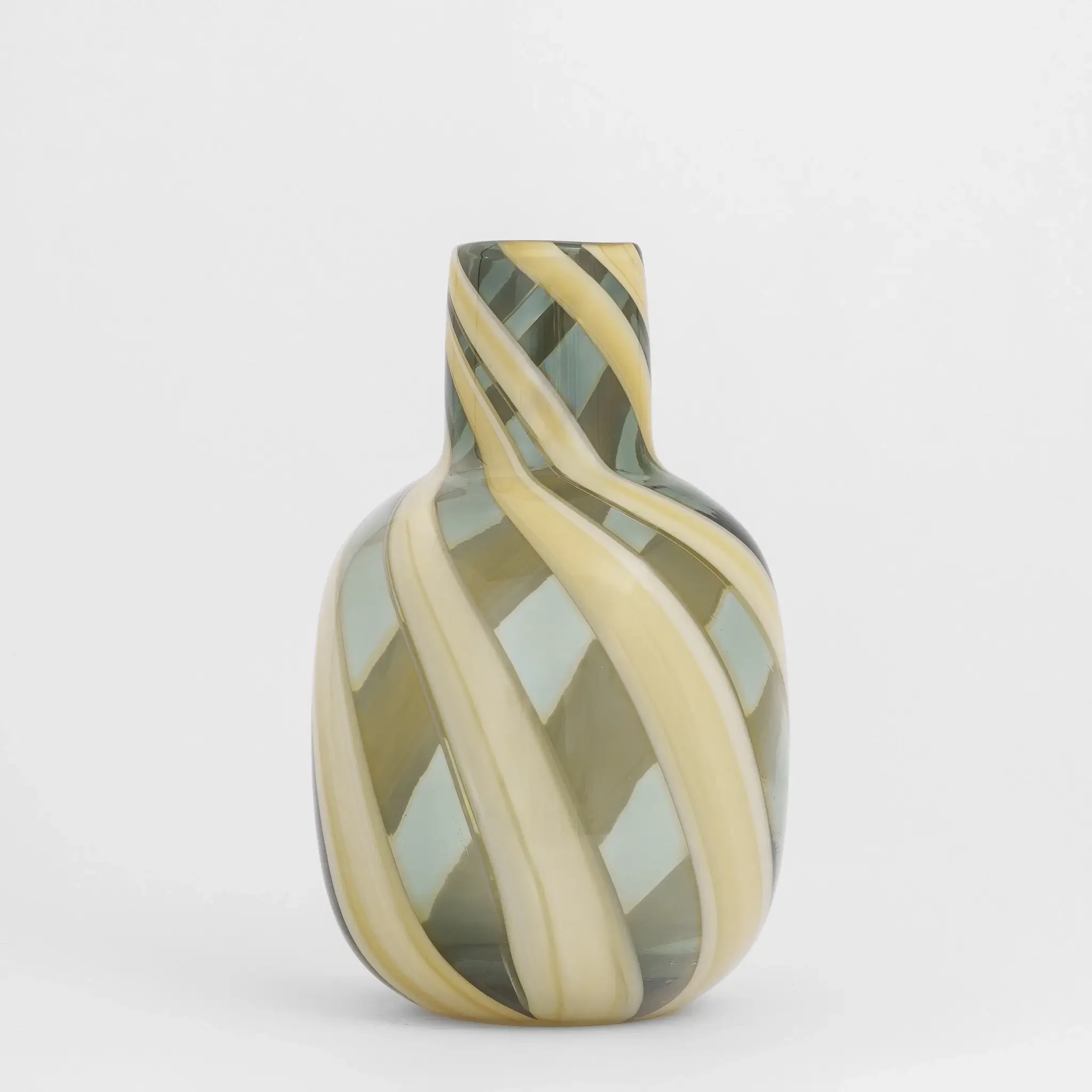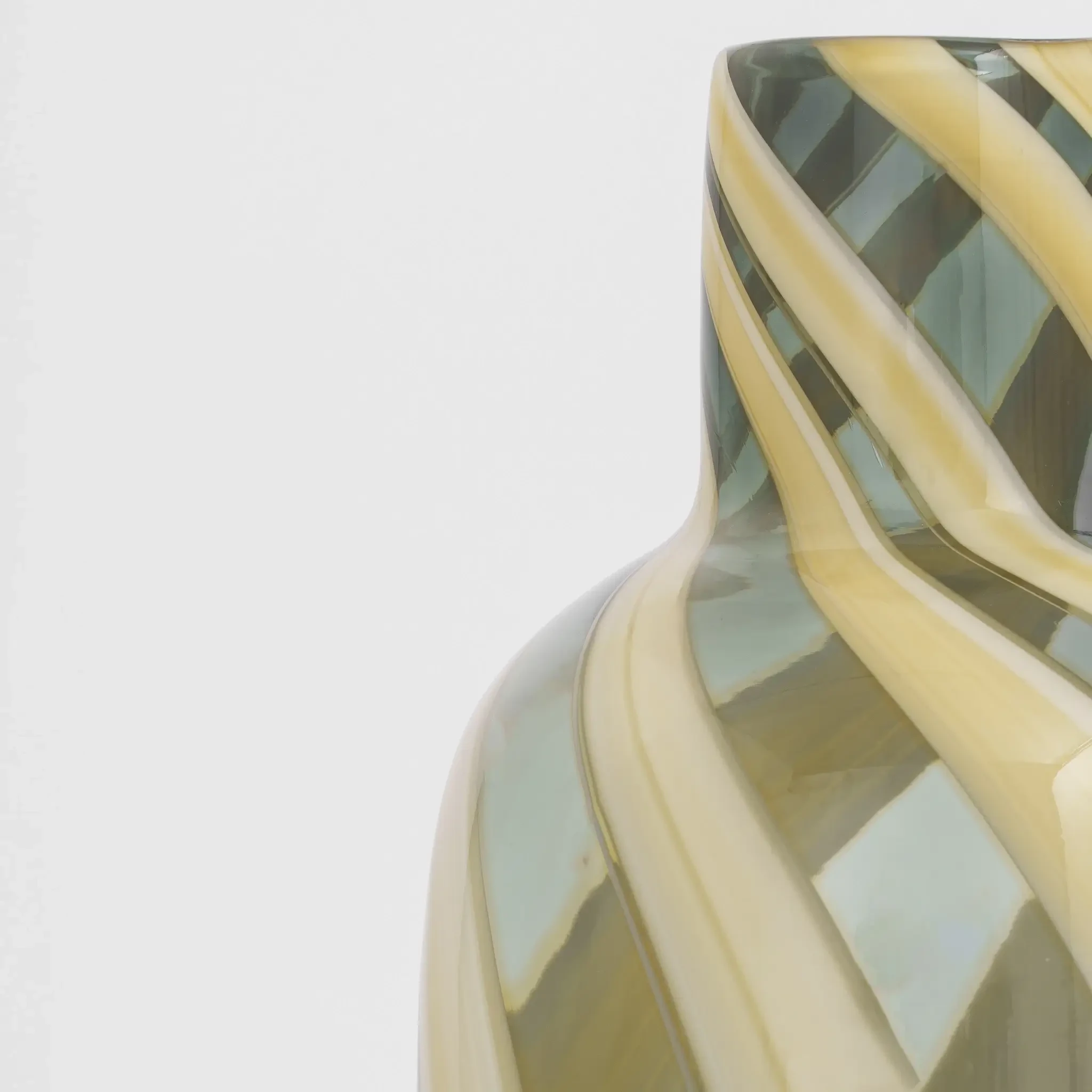 Lyon Yeşil Krem Çizgili Cam Vazo 10x46 cm
