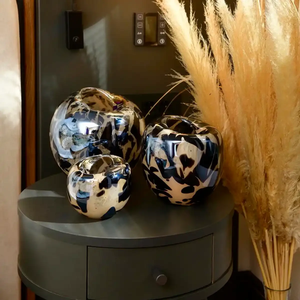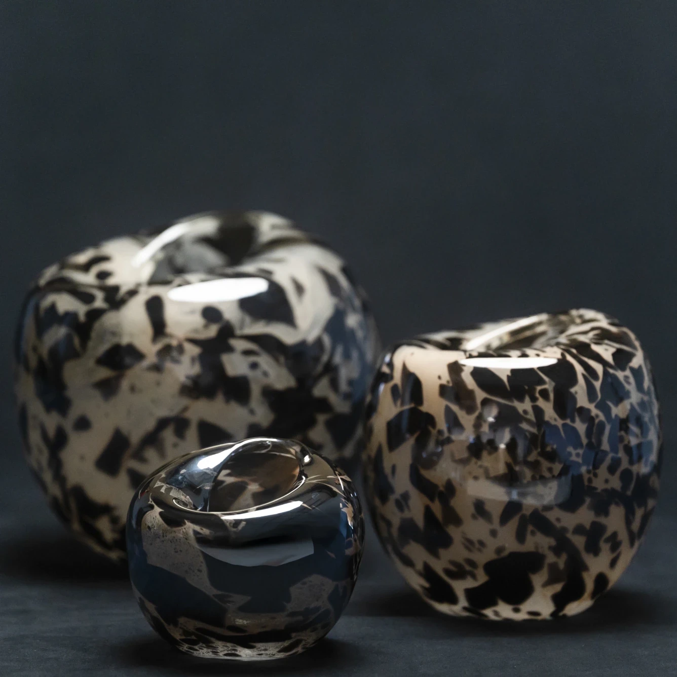 Zoe Siyah Gri El Yapımı Cam Vazo