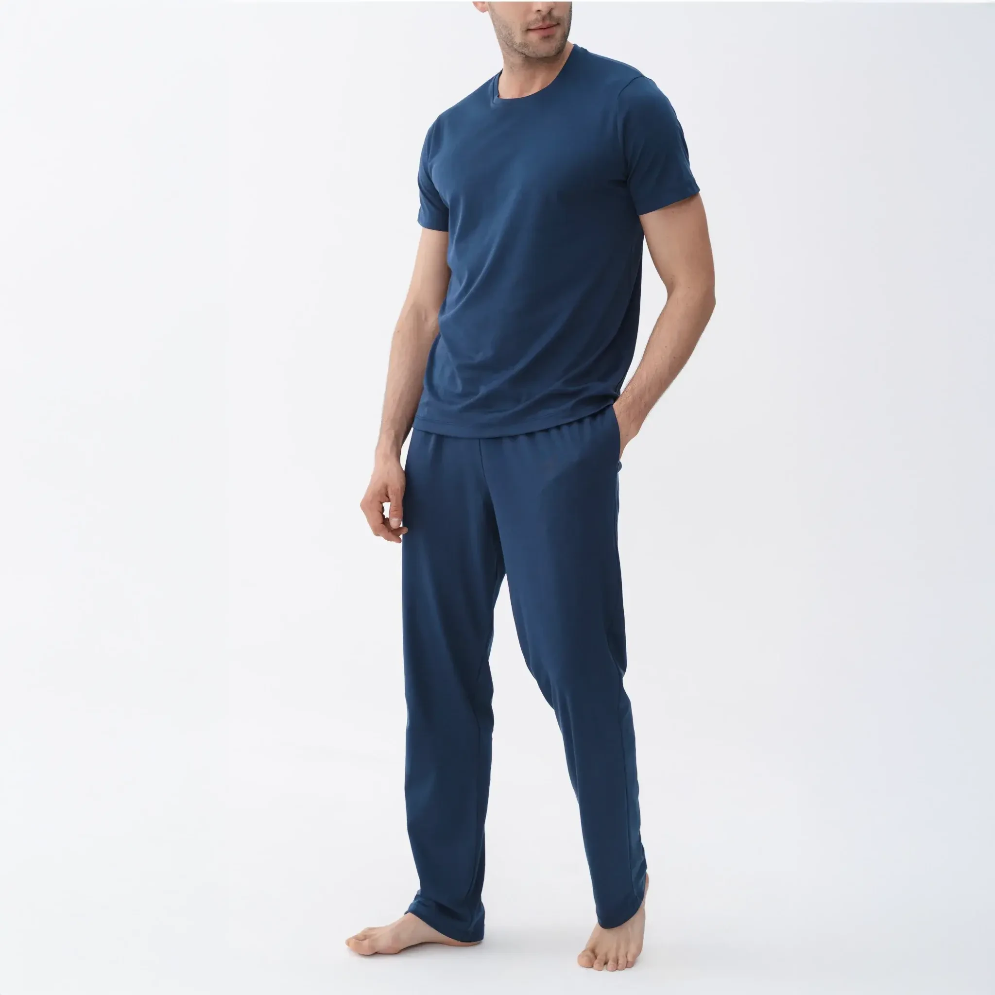 Karis Erkek Pamuklu Pijama Takımı, %100 pamuklu yumuşak dokusuyla gün boyu ve gece boyunca konfor sunar. Nefes alabilir yapısı sayesinde cildinizle uyum sağlar, rahat bir uyku deneyimi yaşatır. Lacivertin klasik ve şık duruşuyla tasarlanan bu pijama takımı, evde geçirdiğiniz her anı daha keyifli hale getirir.
