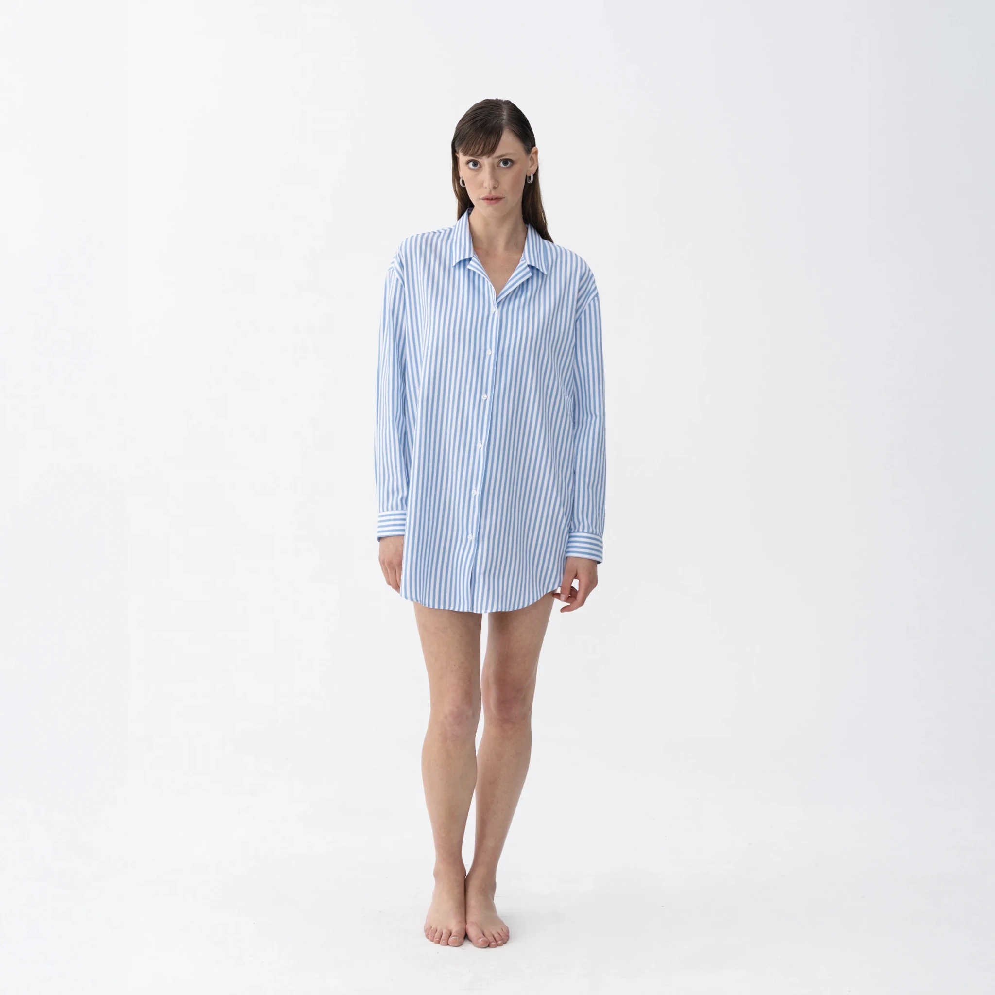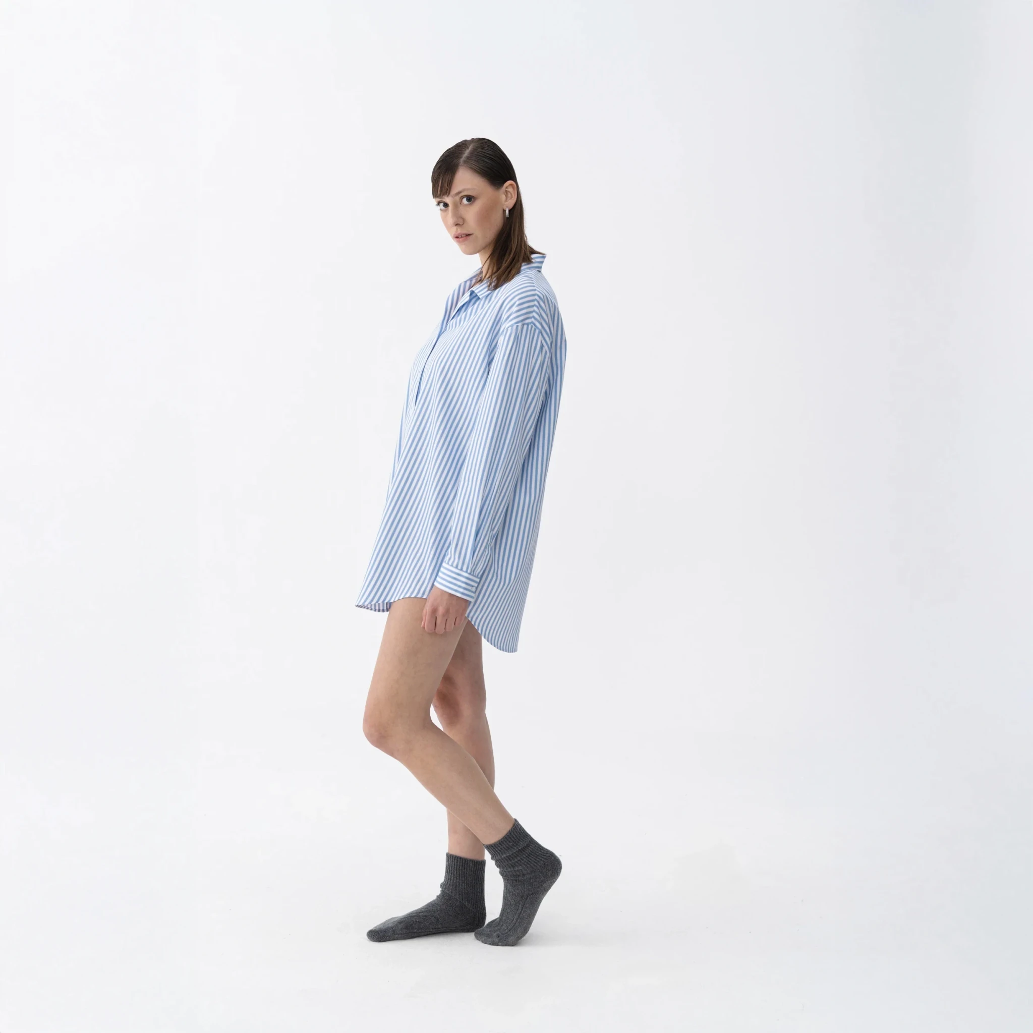 Janie Kadın Dokuma Gömlek Elbise Mavi