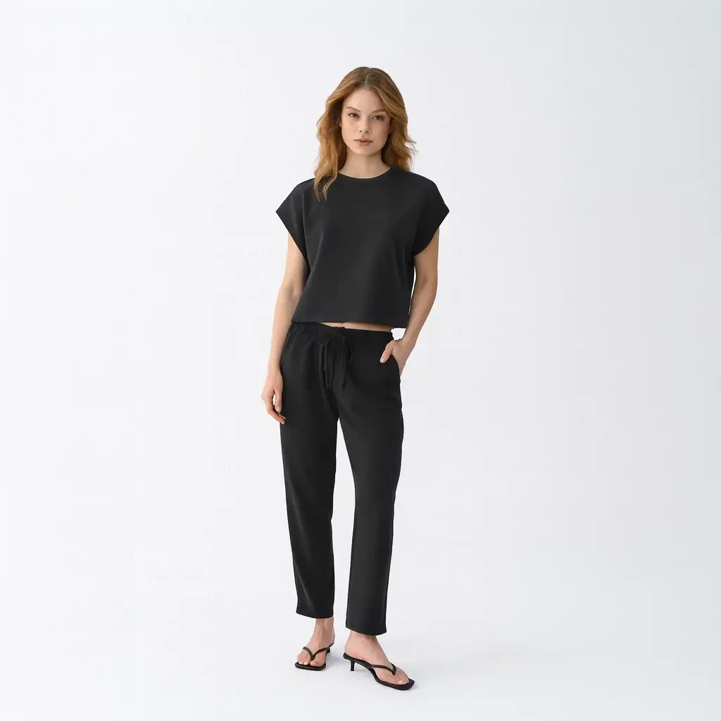 Nua koleksiyonu, modal kumaşın hafif ve nefes alabilen yapısıyla tasarlanan tişört ve pantolonları bir araya getiriyor. Esnek ve yumuşak dokusu sayesinde hem günlük tempoya uyum sağlıyor hem de modern bir şıklık sunuyor. Kendinizi her an rahat hissedeceğiniz bu koleksiyon, gardırobunuzun vazgeçilmezi olmaya aday!