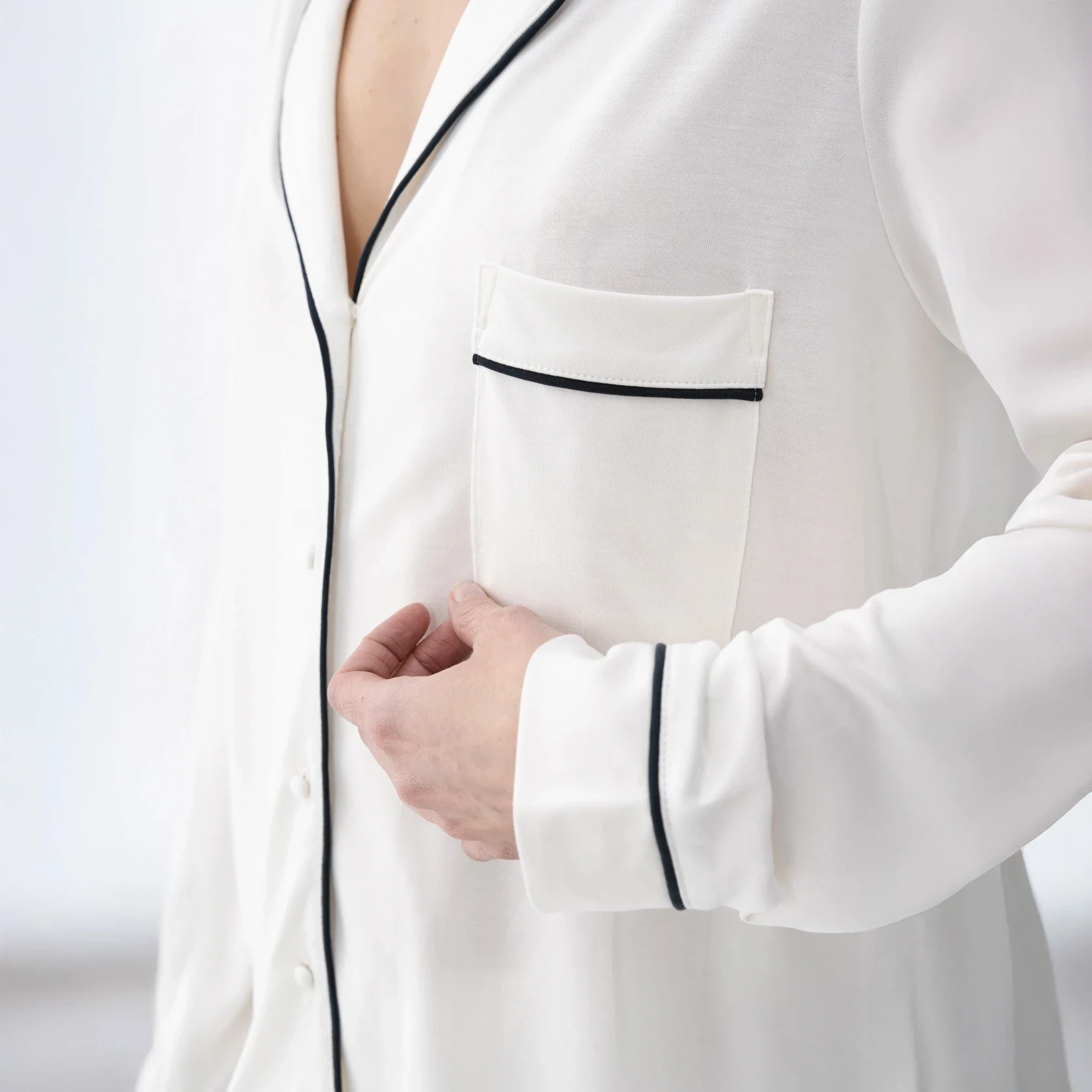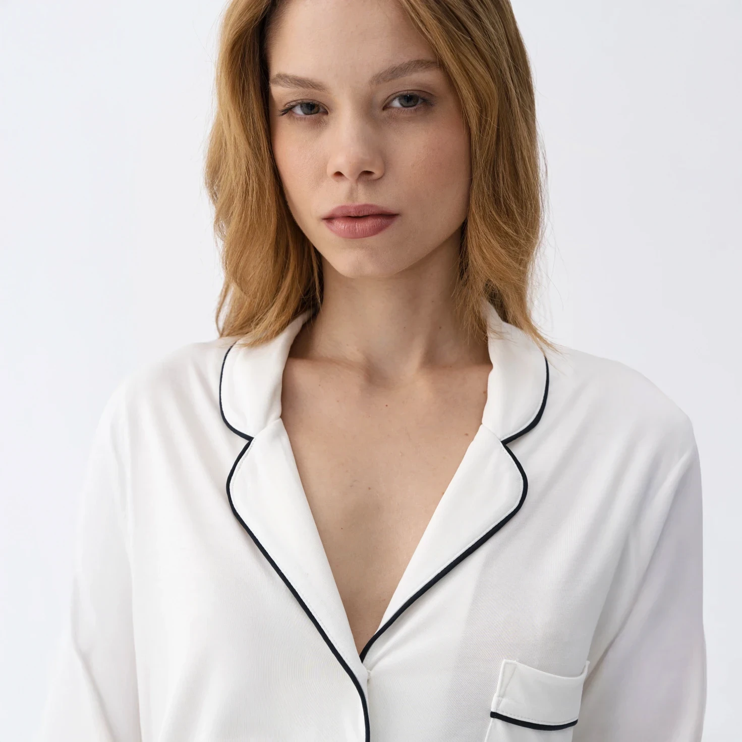 Sia Kadın Modal Biyeli Uzun Kol Pijama Üst Ekru