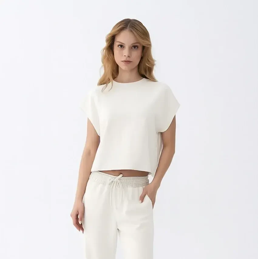 Nua Kadın Modal Tişört Ekru