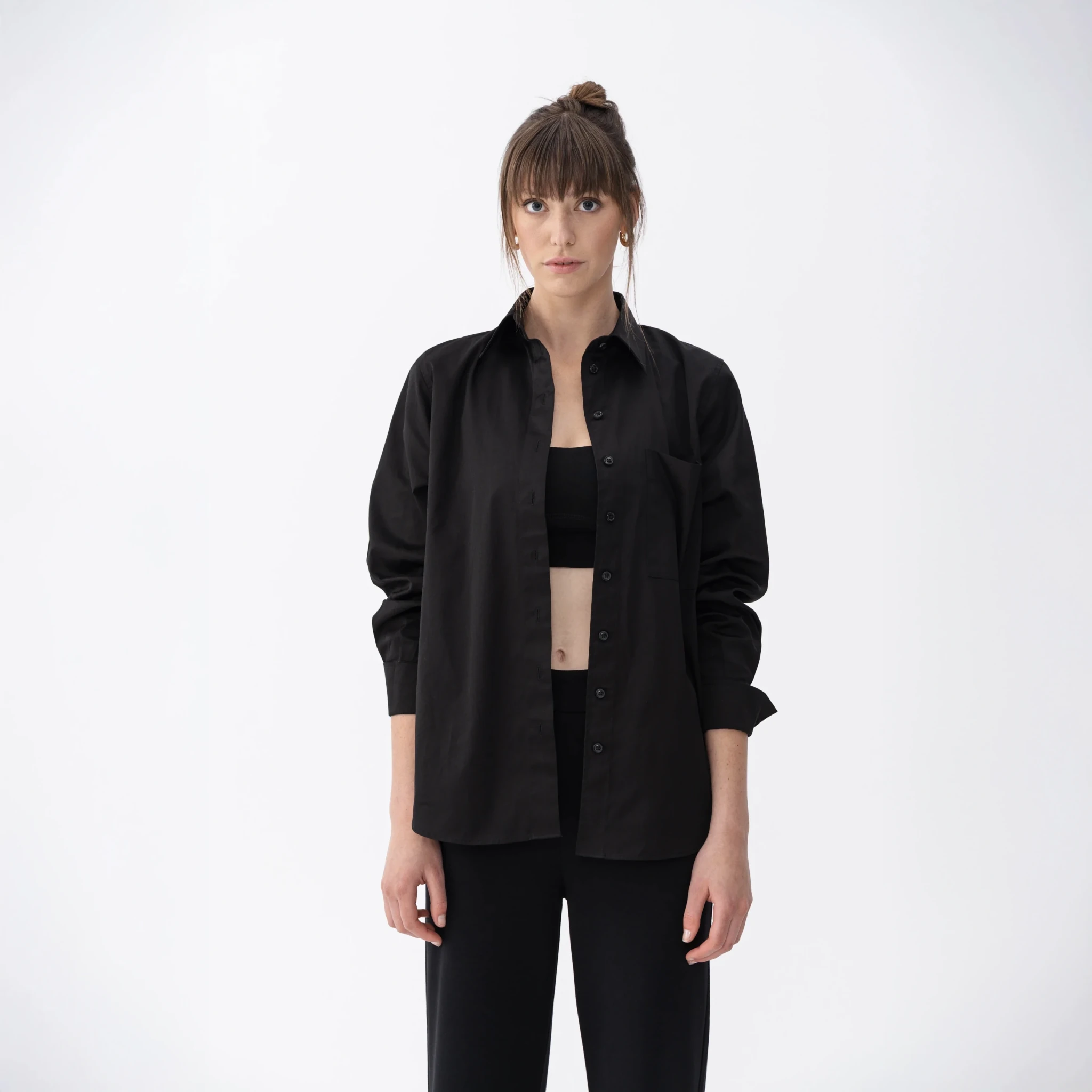 Nora Kadın %100 Pamuklu Oversize Gömlek Siyah