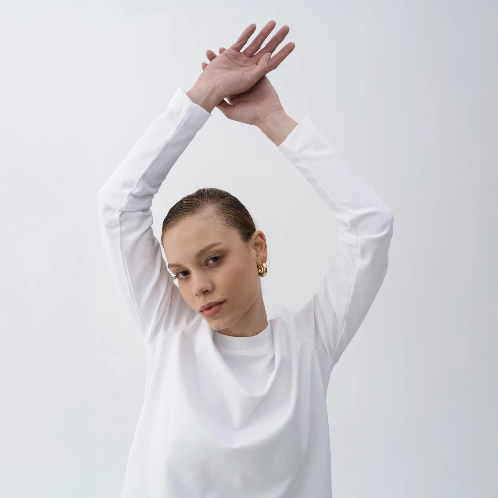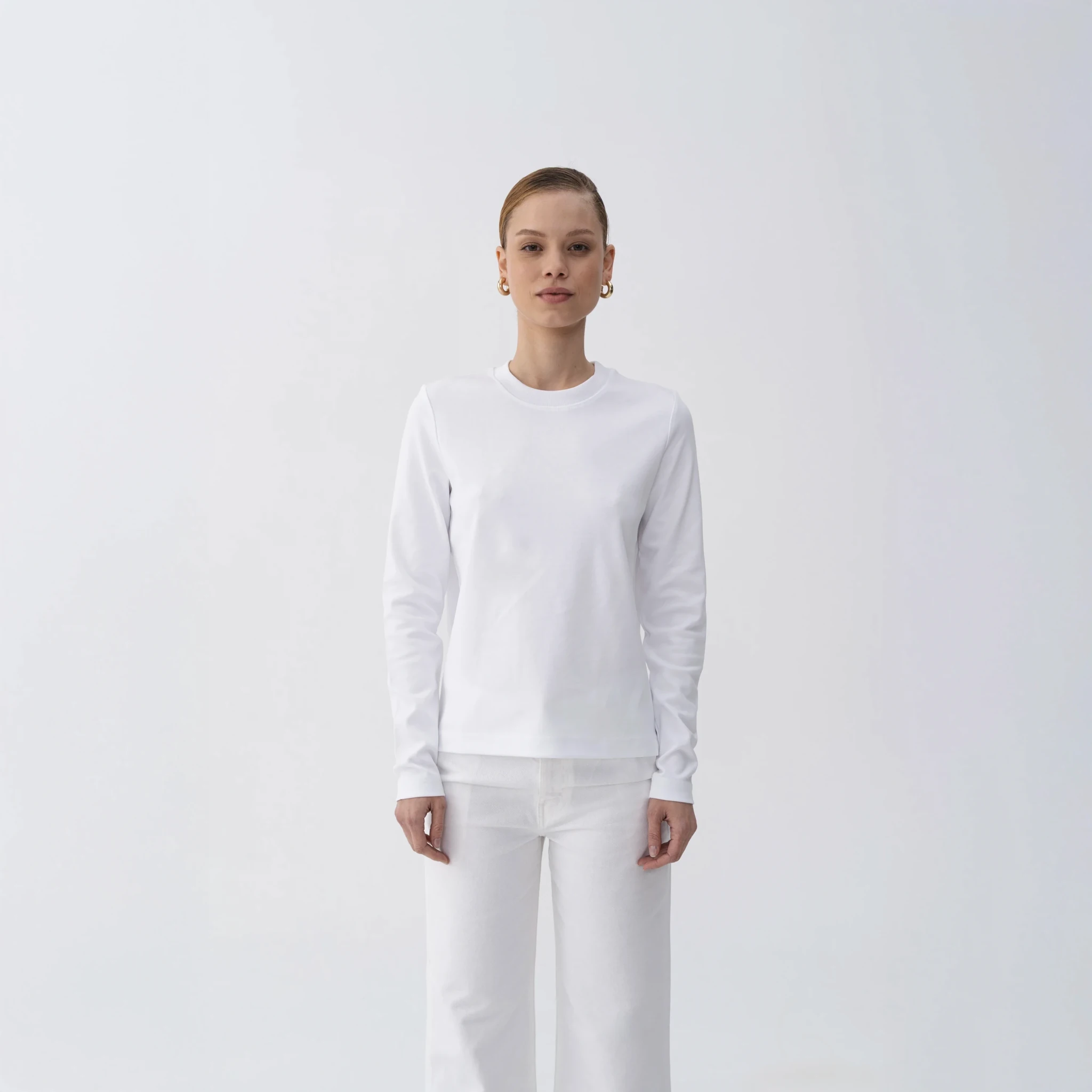 Dori Kadın % 100 Pamuk Uzun Kol Tişört Beyaz