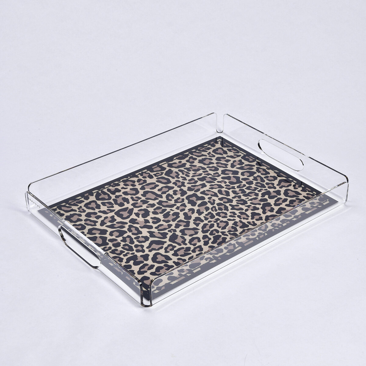 Leora Pleksi Leopar Siyah Tepsi 36x26 cm, modern evlerin sunum ve dekorasyon ihtiyaçları için tasarlanmış şık ve fonksiyonel bir servis tepsisidir. Siyah leopar desenli pleksi yüzeyi, güçlü bir stil ifadesi sunar ve sunumlarınıza dikkat çekici bir estetik kazandırır. Pleksi malzeme, hafif olmasına rağmen dayanıklı yapısıyla uzun ömürlü kullanım sağlar ve günlük servisten özel davetlere kadar geniş kullanım alanı sunar. 36x26 cm ölçüsü, çay-kahve servisi, atıştırmalık sunumları veya dekoratif objelerin sergilenmesi için ideal boyuttur. Ayrıca pleksi yüzeyin temizliği kolaydır; sadece nemli bezle silinmesi yeterlidir, bu da pratik bir kullanım sağlar. Böylece hem dekoratif hem de işlevsel bir parça olarak evinizde yer alabilir