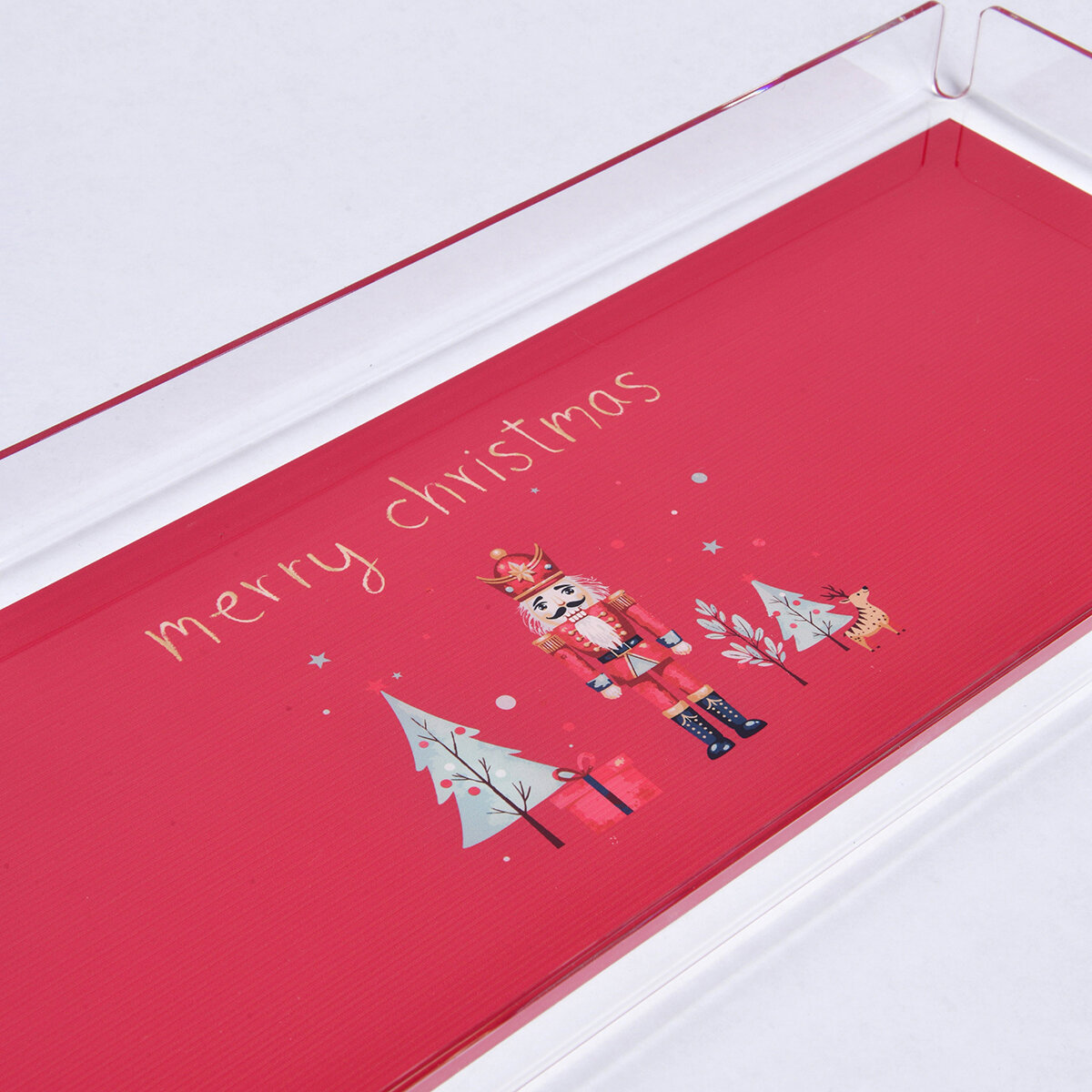 Yılbaşı sofralarınızı ve ev dekorasyonunuzu tamamlayan bu özel tasarım sunum tepsisi, hem estetik hem de fonksiyonel özellikleriyle öne çıkıyor. Zarif detaylara sahip yüzeyi ile yılbaşı ruhunu yansıtırken, misafirlerinize atıştırmalıklar, içecekler veya tatlılar için ideal bir servis alanı sunar.