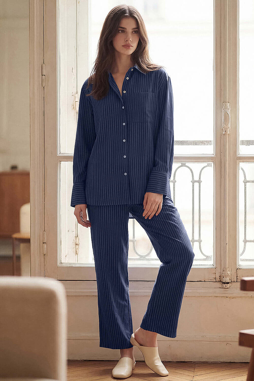 Sierra Kadın Çizgili Uzun Kol Gömlek Lacivert ile şıklığı günlük stilinize kolayca taşıyın. Lacivert zemin üzerindeki çizgili tasarım, kombinlerinize modern ve zarif bir hava katar; uzun kol formu sayesinde mevsim geçişlerinde de rahat bir kullanım sunar.