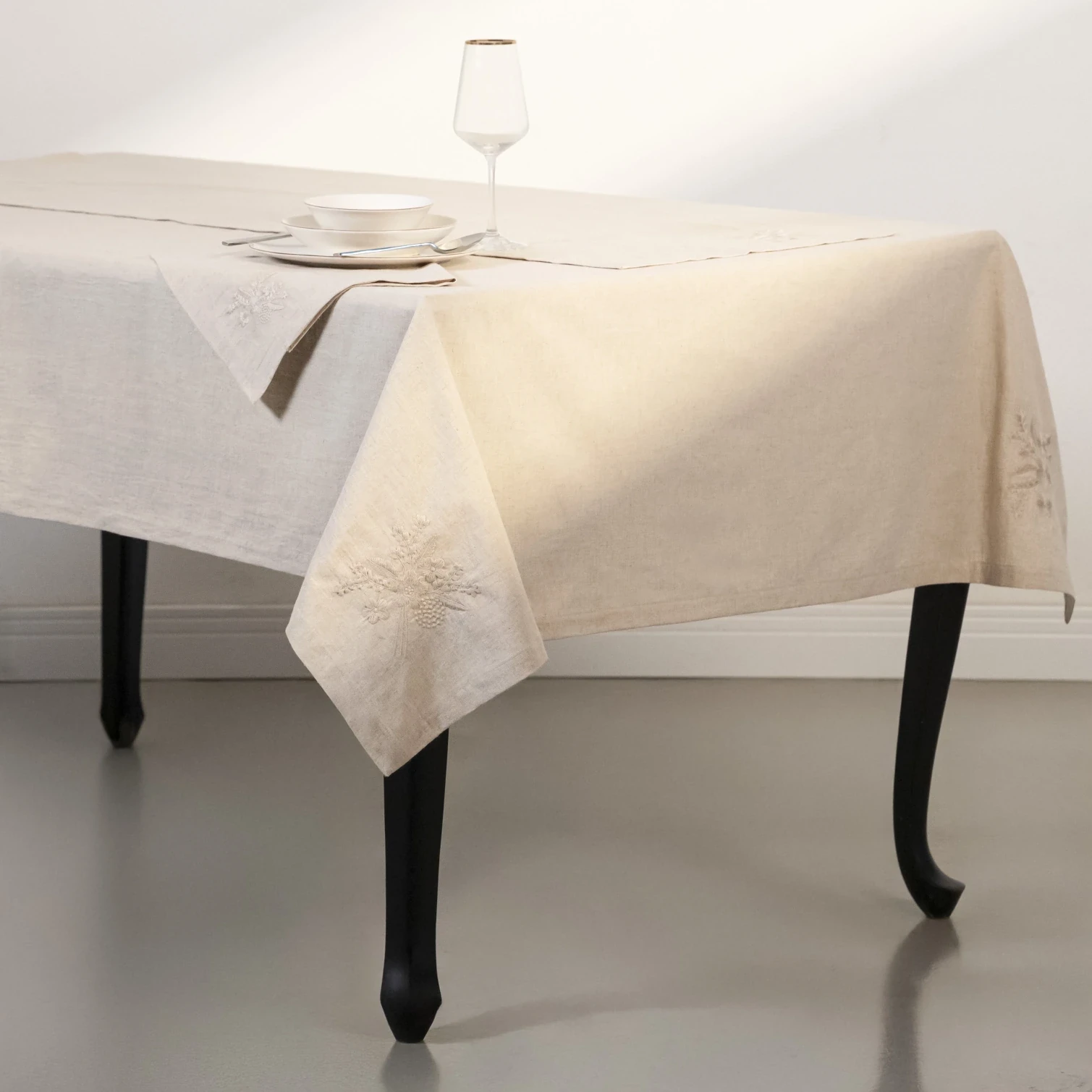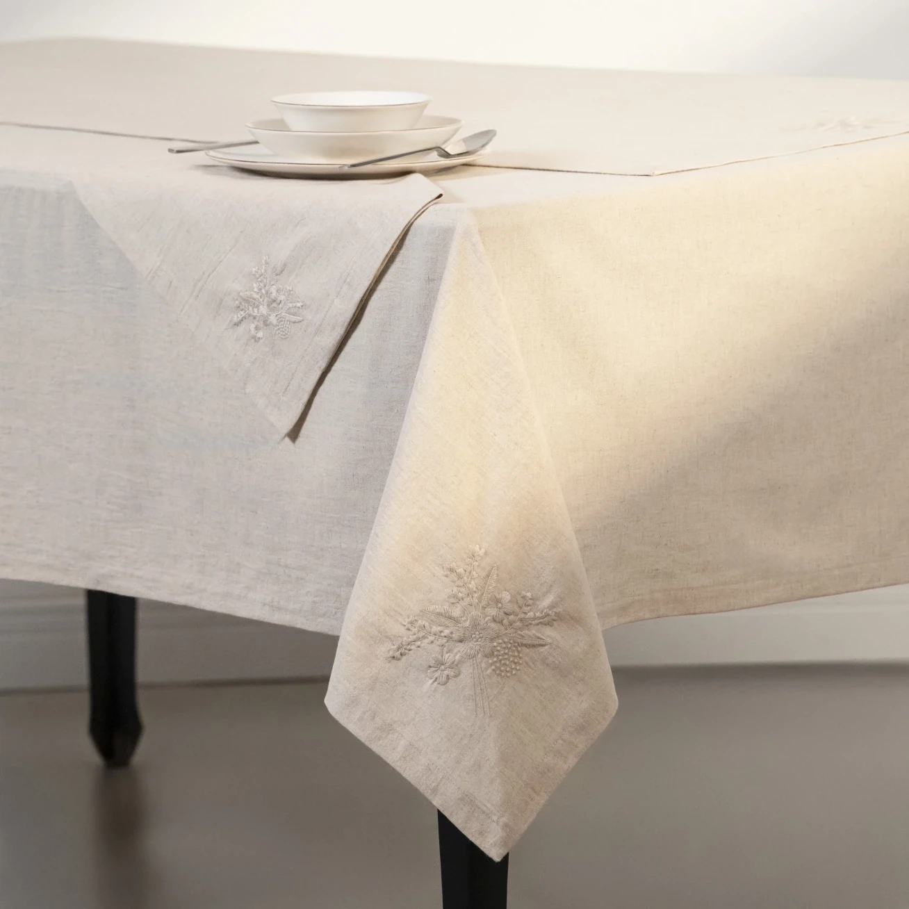 Julien Pamuk Keten Çiçek Nakışlı Masa Örtüsü Ekru