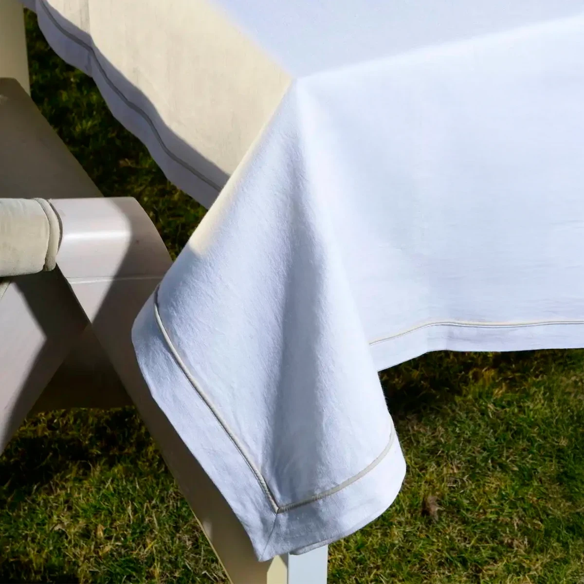 Lucca Pamuk Keten Biyeli Masa Örtüsü Beyaz