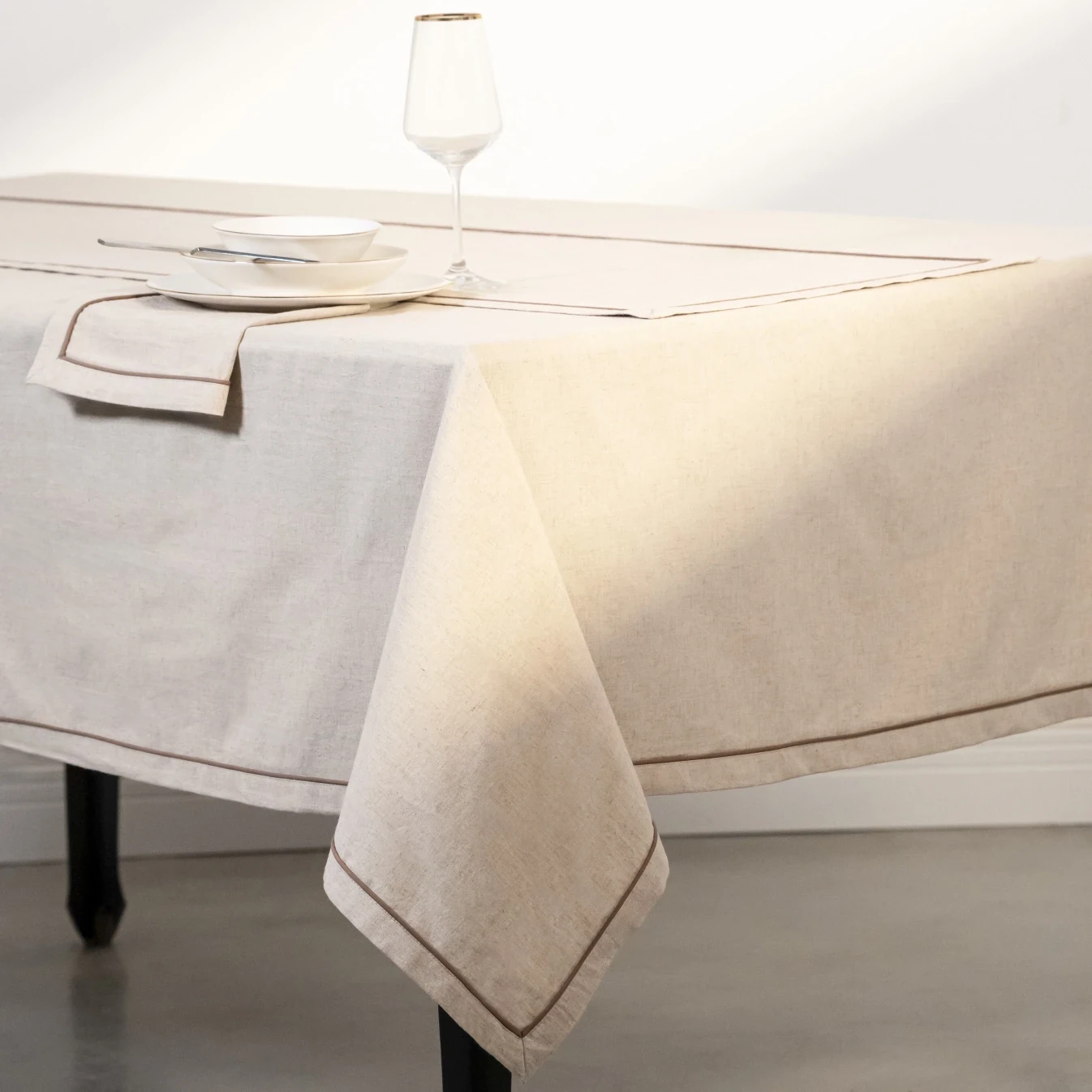 Lucca Pamuk Keten Biyeli Masa Örtüsü Ekru