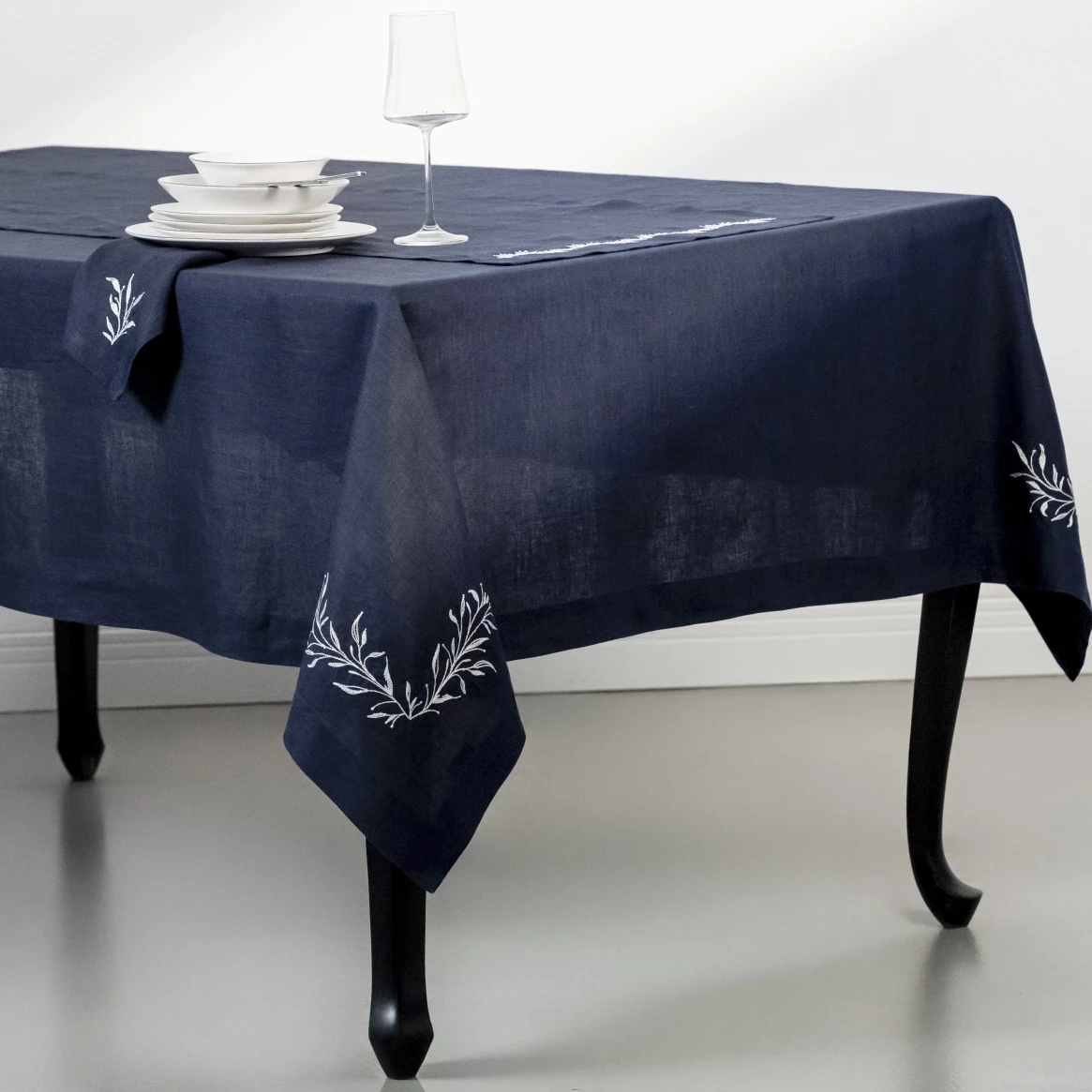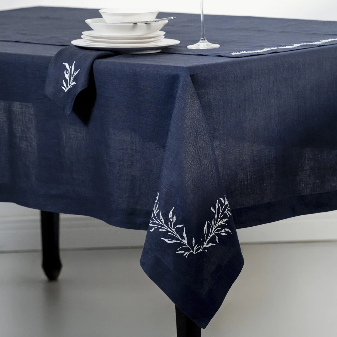 Petite %100 Keten Lacivert Masa Örtüsü