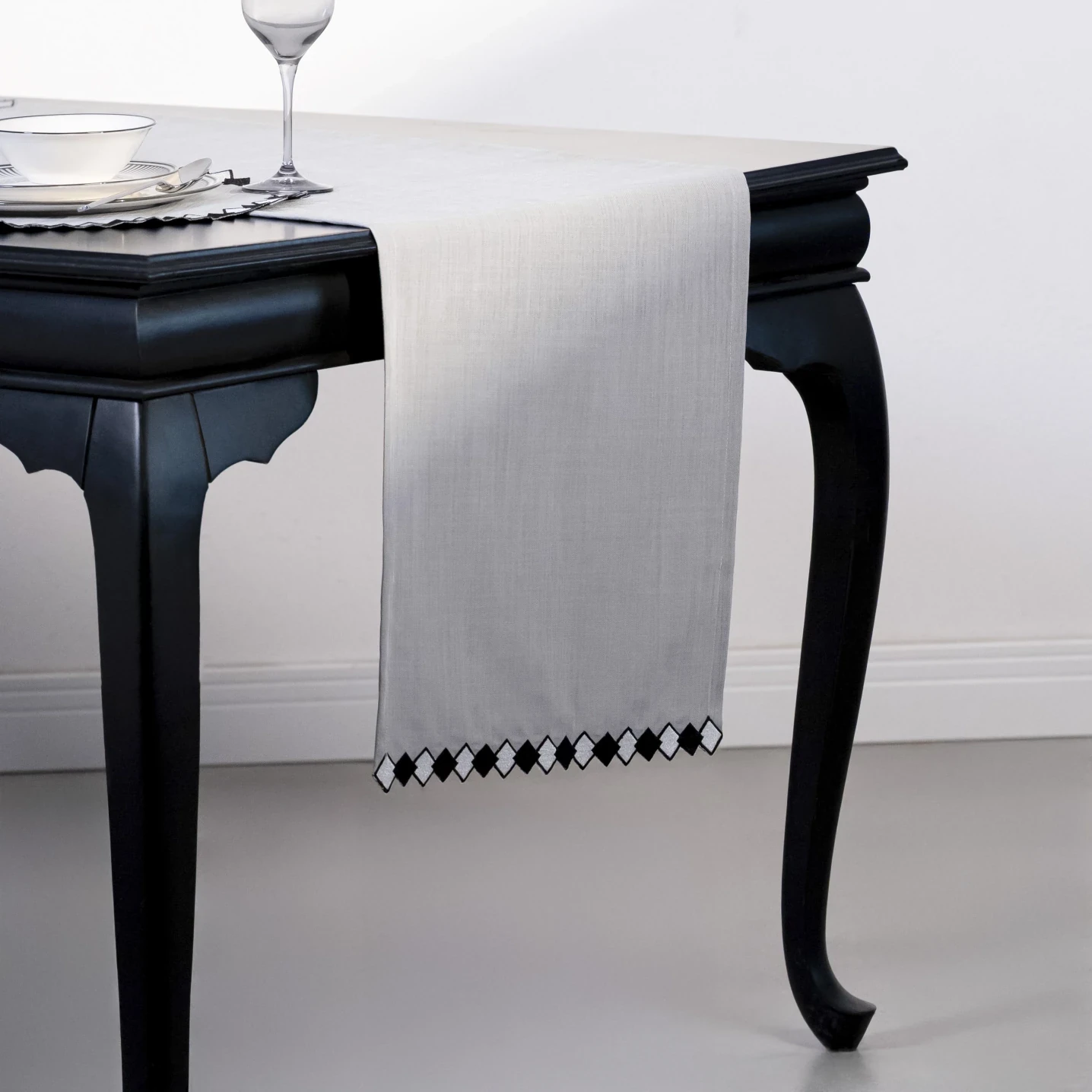 Matilda Runner, %100 polyester malzemesiyle dayanıklı ve şık bir kullanım sunarken, gri renginin zarif ve modern duruşuyla sofralarınıza estetik bir dokunuş katıyor. Leke tutmayan ve kolay temizlenebilir yapısıyla hem günlük kullanıma hem de özel davetlere mükemmel uyum sağlıyor.