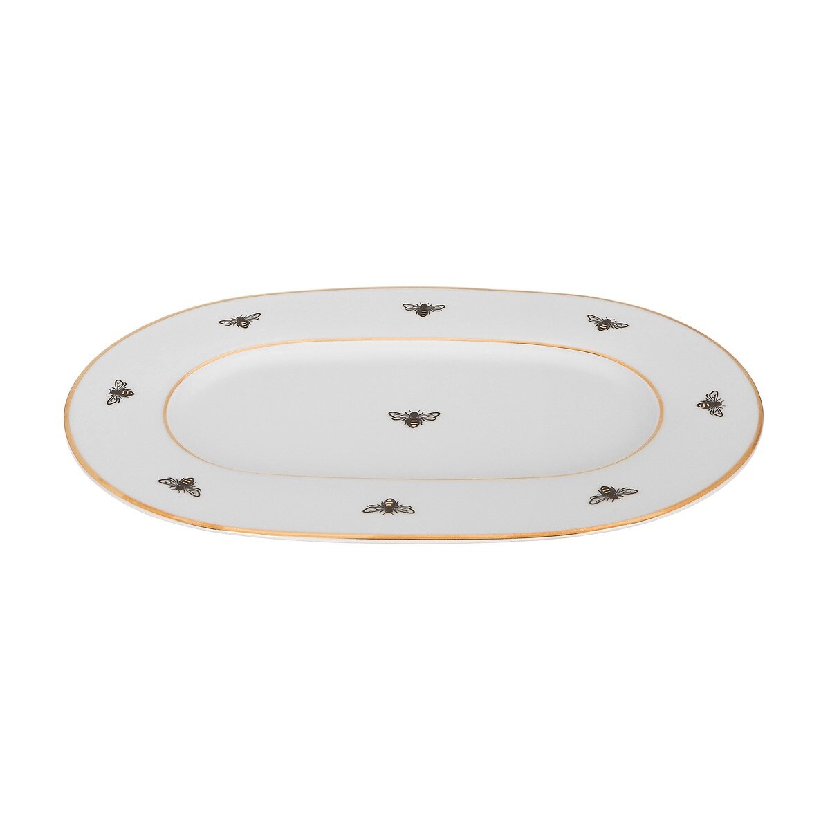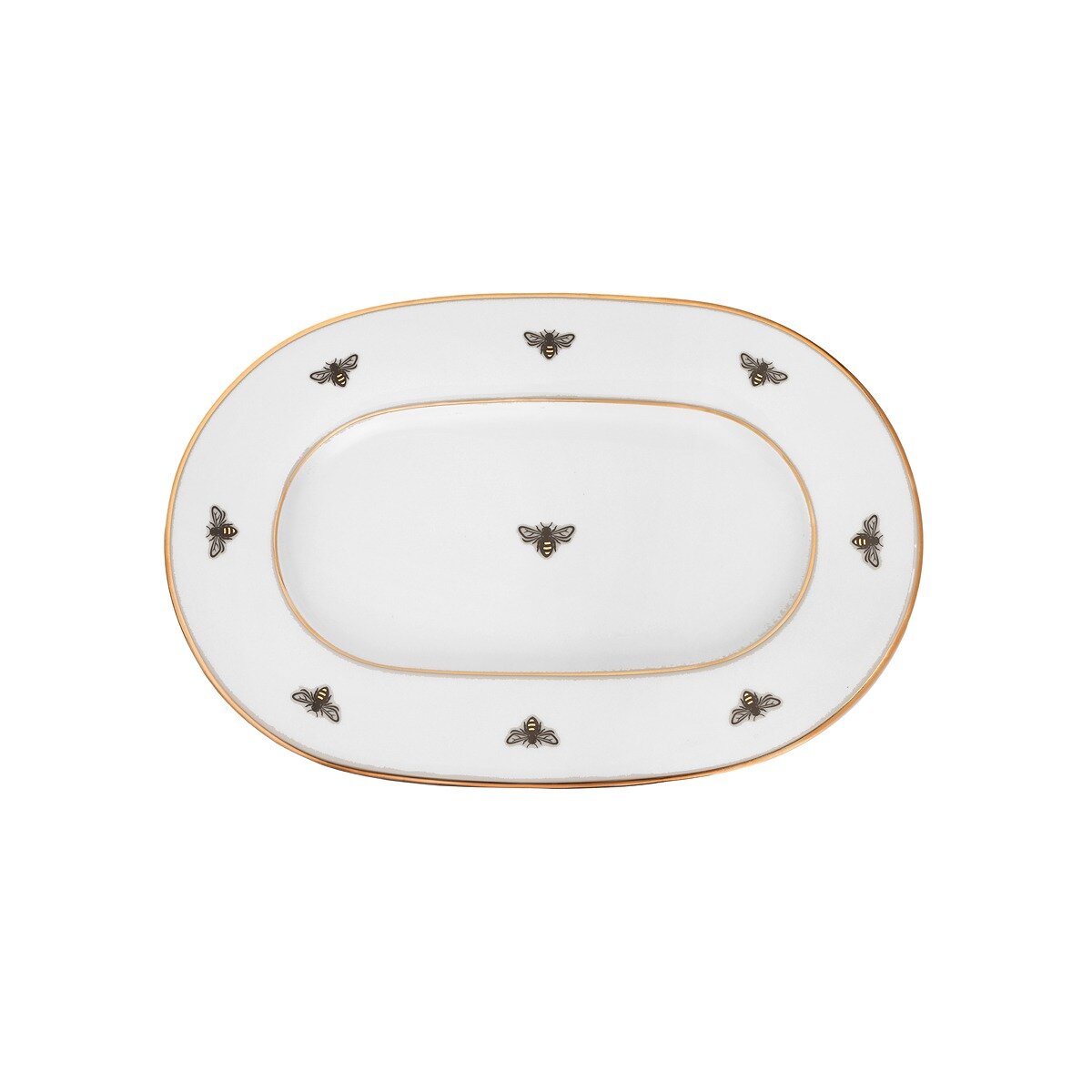 Hem günlük şık sofralarınızda hem de özel davetlerinizde baş köşeyi alacak bu tasarım, sunumlarınıza asil bir hava katar. Tabağın çevresini saran altın sarısı ince çizgiler ve merkezdeki ikonik arı detayı, misafirlerinizin gözünü kamaştıracak bir estetik sunar.