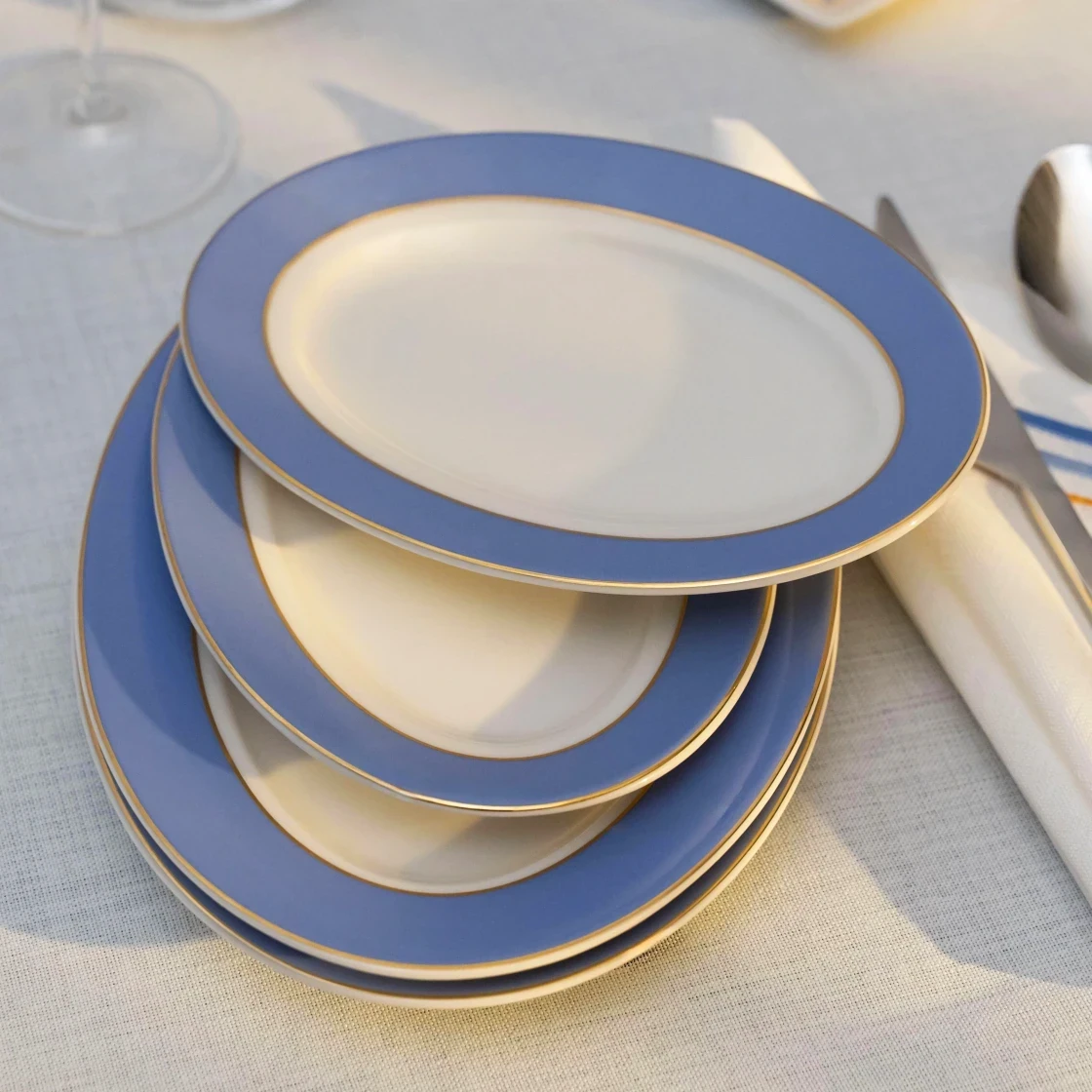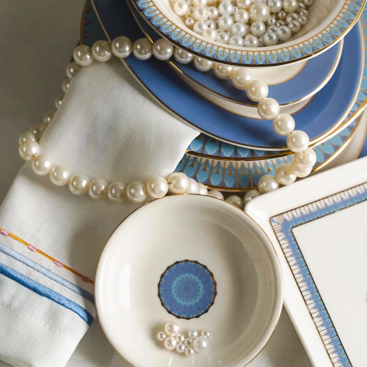 Giselle Mavi Gold koleksiyonu, zarif mavi tonları ve gold detaylarıyla sofralarınıza lüks ve şıklık katıyor. Estetik tasarımı ve kaliteli malzemesi sayesinde özel davetlerden günlük kullanıma kadar her sofraya zarafet ve sofistike bir hava kazandırıyor.