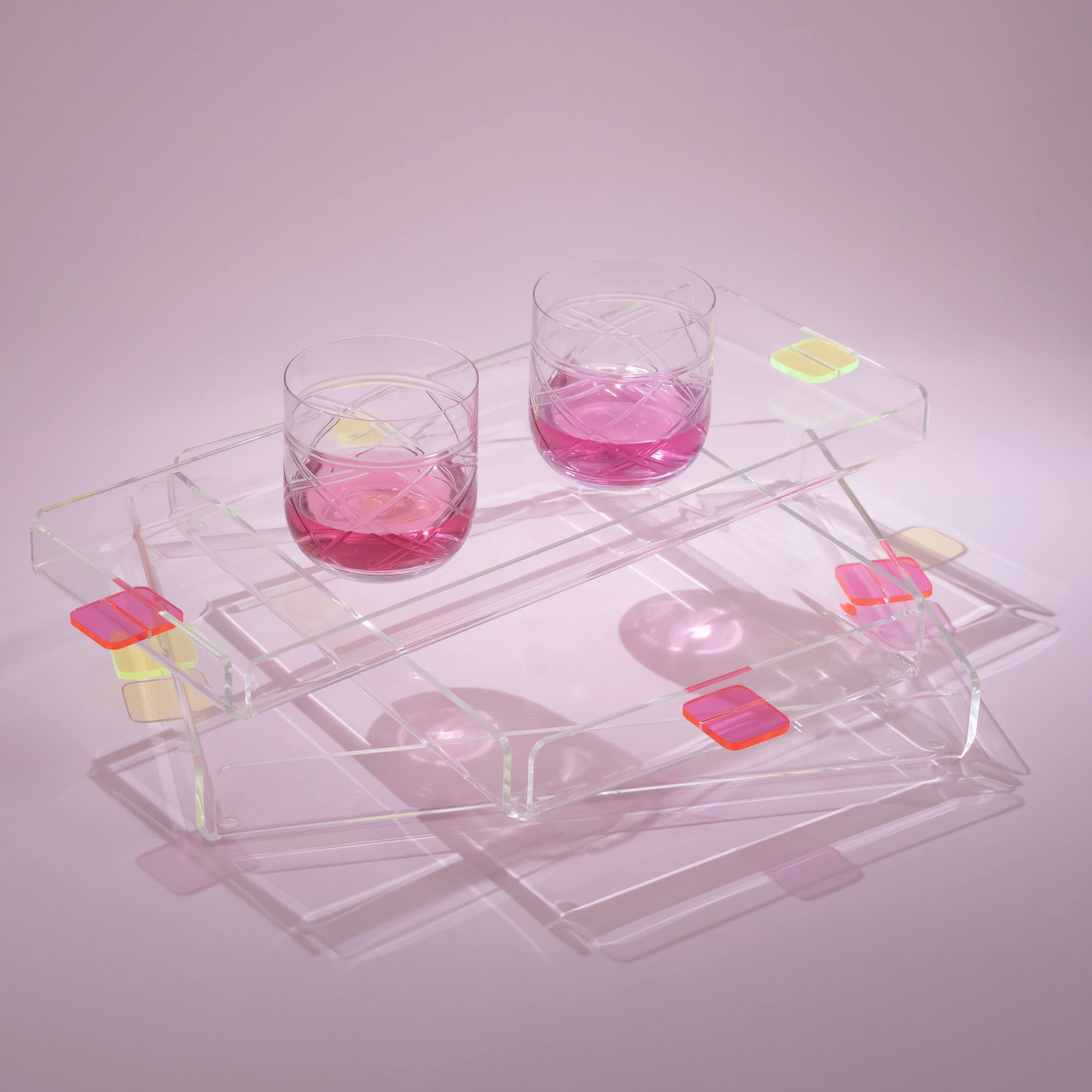 Vasa Neon Pleksi Tepsi Pembe 35x20 cm
