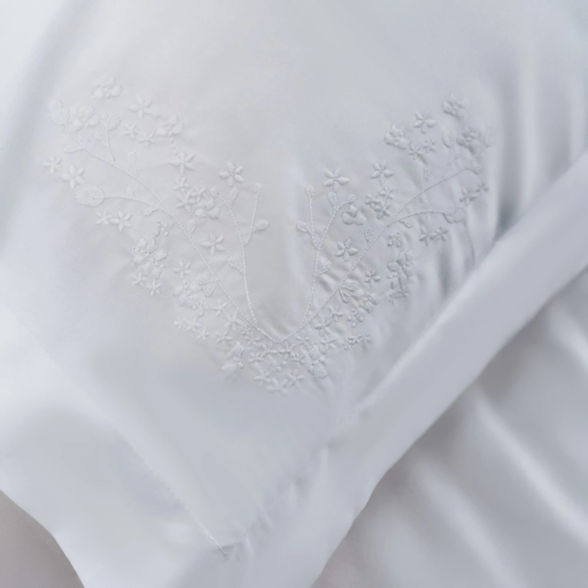 Milo 300 Tc Pamuk Saten Nakışlı ve Ajurlu Çift Kişilik Nevresim Seti Beyaz