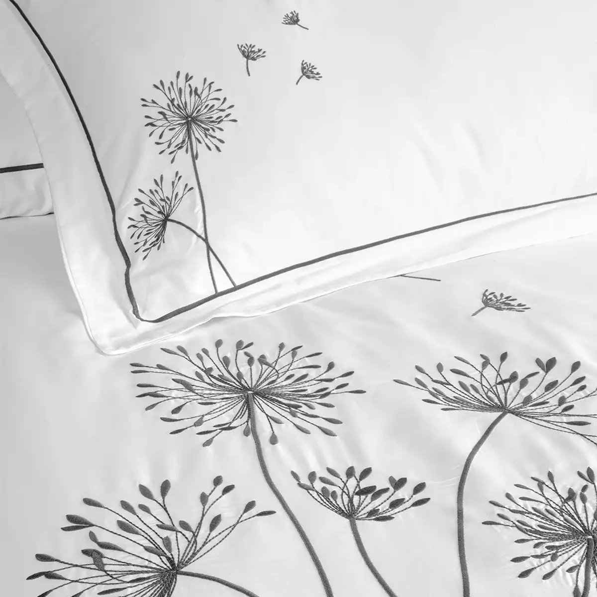 Gloria 300 Tc Pamuk Saten Nakışlı King Size Nevresim Seti Beyaz Antrasit