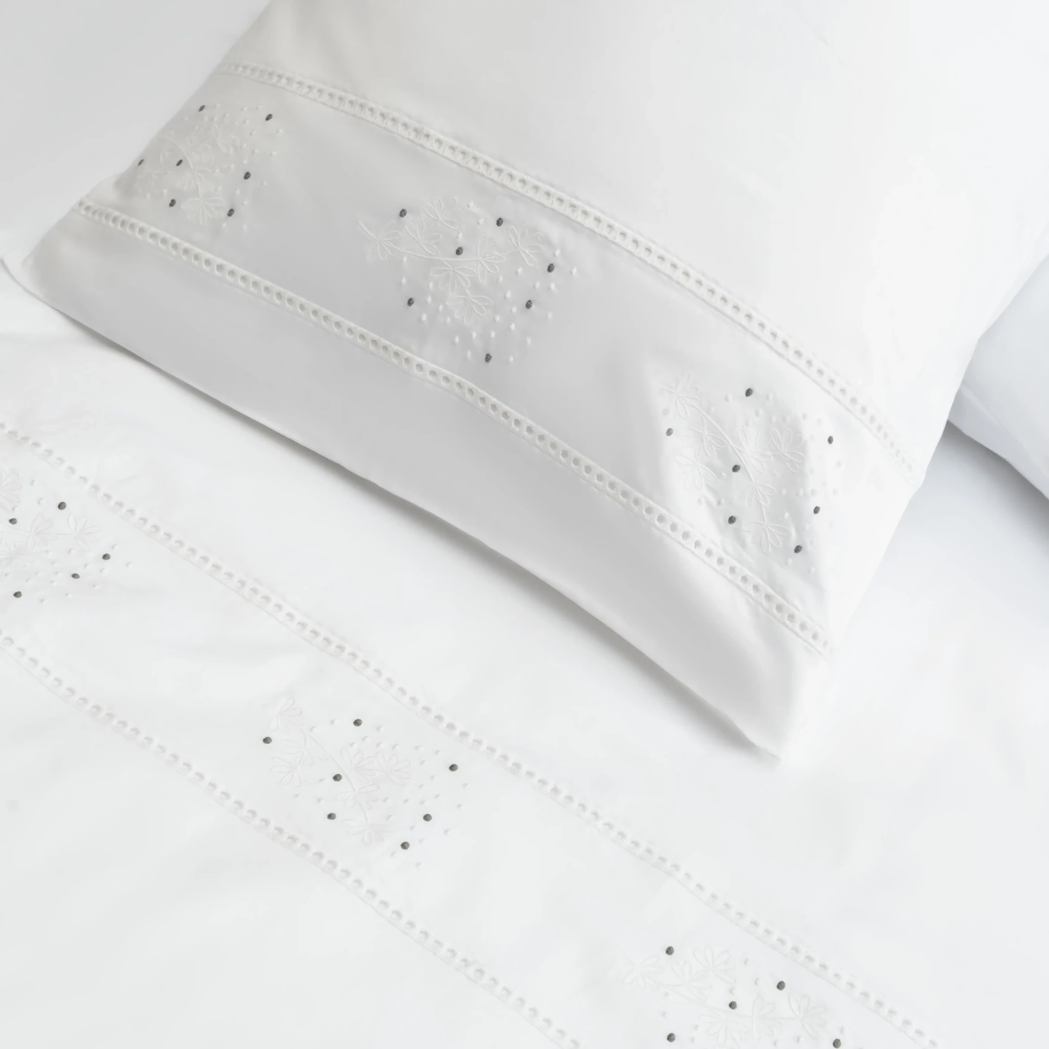 Grace 300 Tc Pamuk Perkal Nakışlı ve Ajurlu King Size Nevresim Seti Beyaz