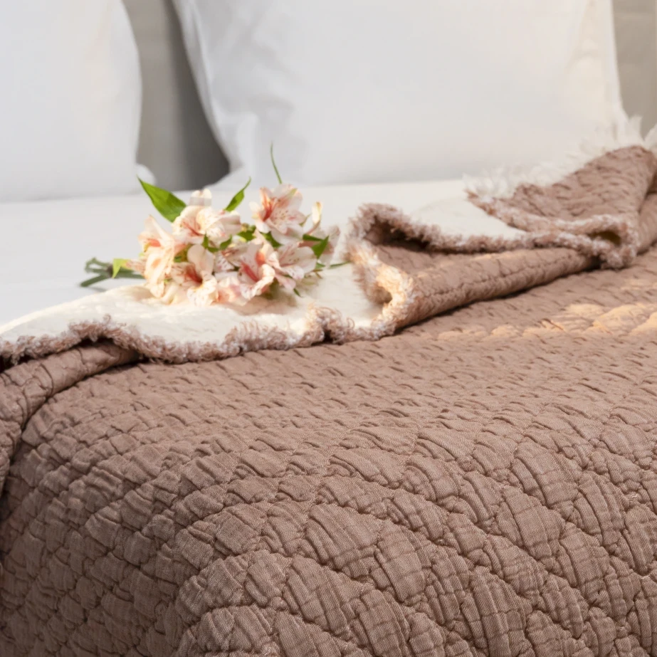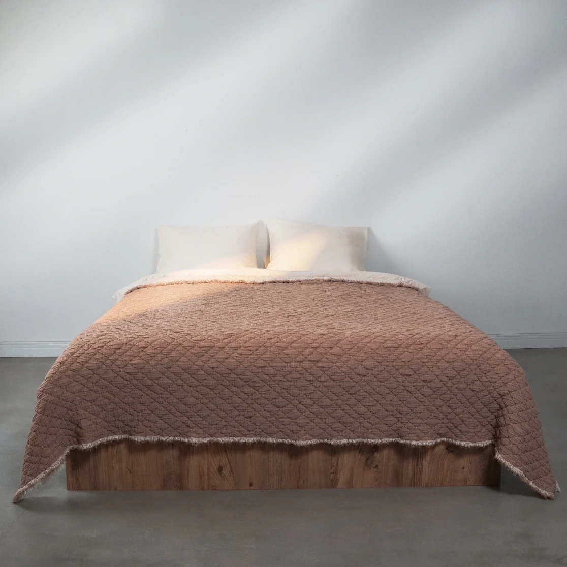 Jade Müslin Ekstra Dolgulu Çift Kişilik Yatak Örtüsü Kiremit 230x240 cm