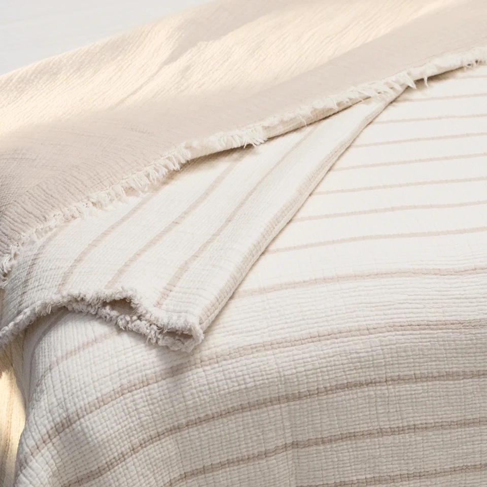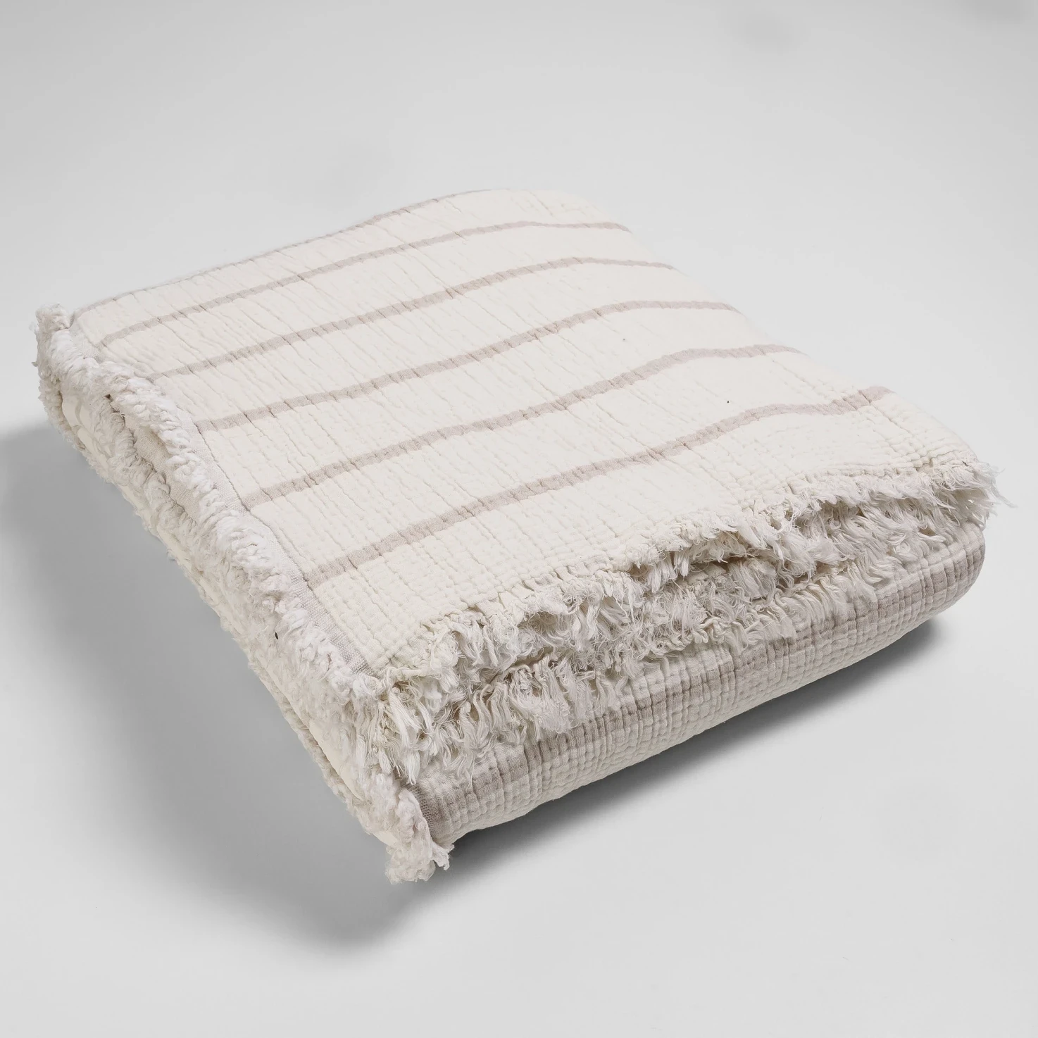 Ruby Dolgulu Müslin Çift Kişilik Yatak Örtüsü Ekru Bej 230x250 cm